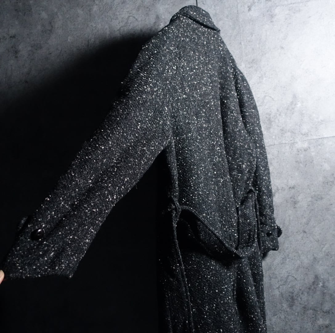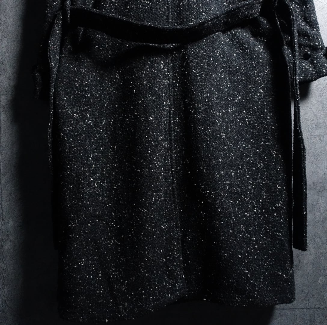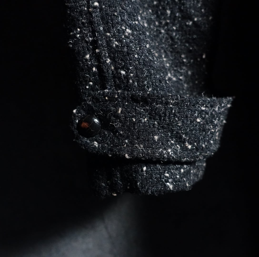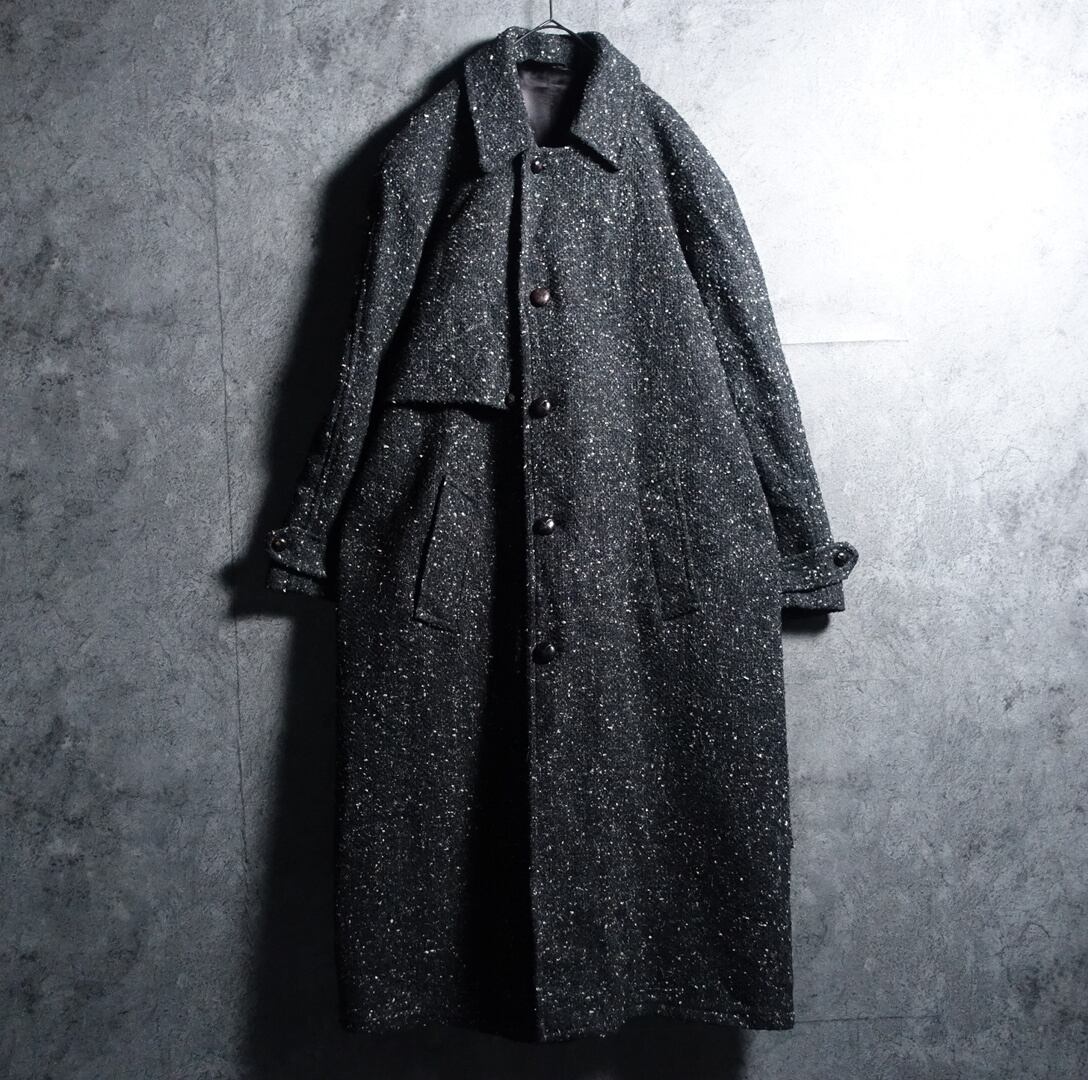 80s “FIDELITY” Dark Gray Maxi Length Balmachan Loop Tweed Coat