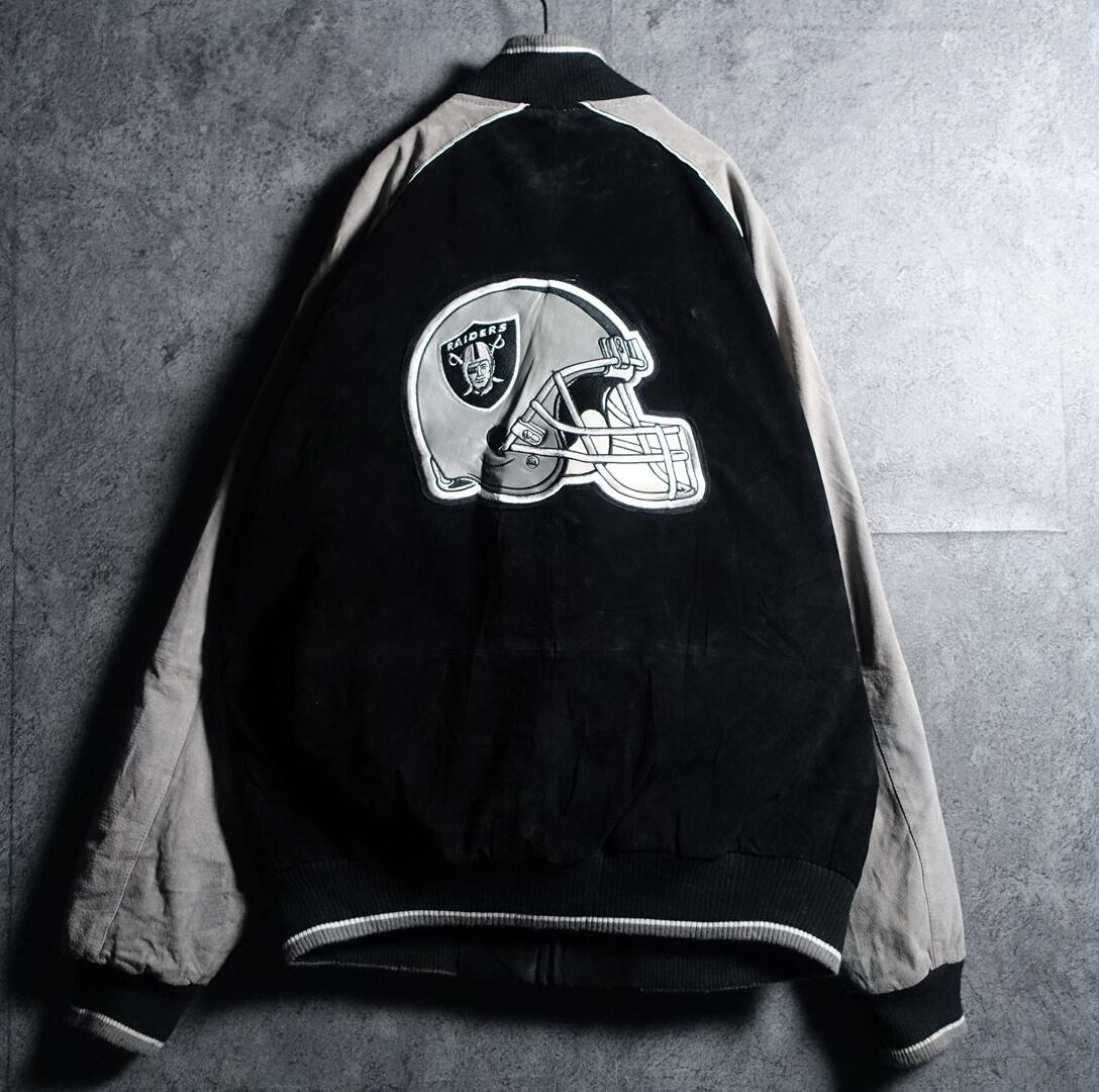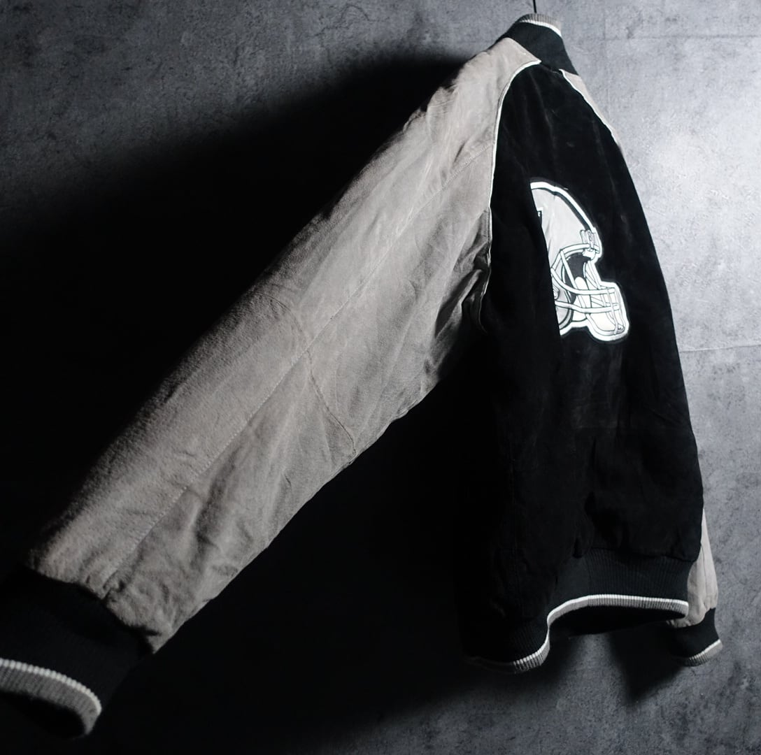 “NFL” Black RAIDERS Logo Patch Design Leather Stadium Jacket