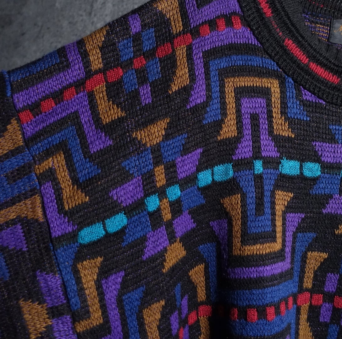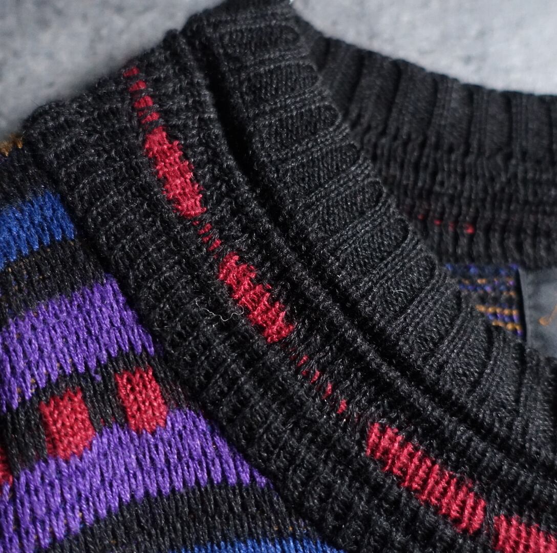 Multicolor Geometric Pattern Design Ramie Cotton Knit