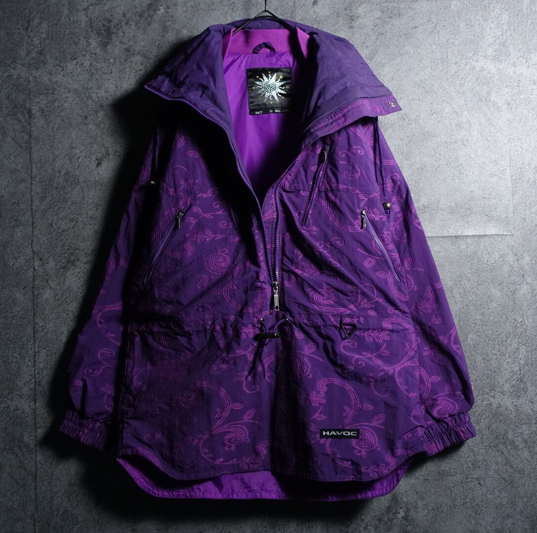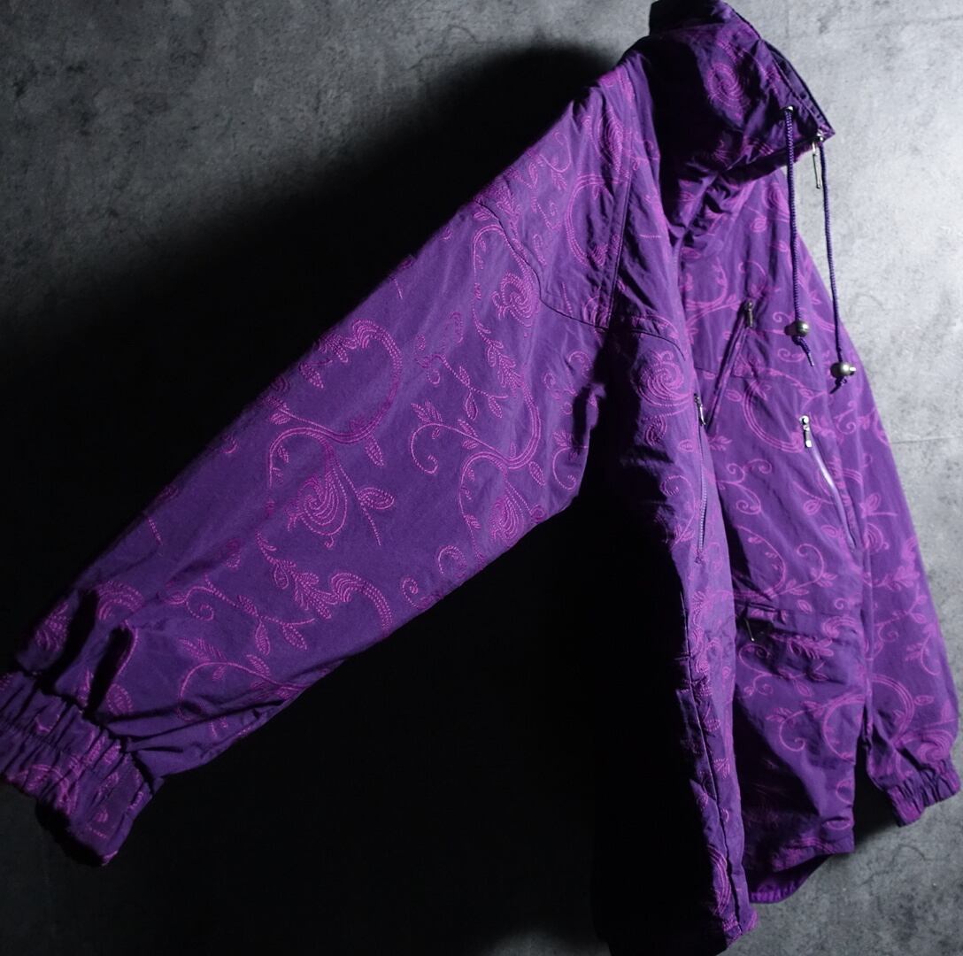 “HAVOC” Purple Botanical Embroidery & Zip Pocket Design Nylon Jacket