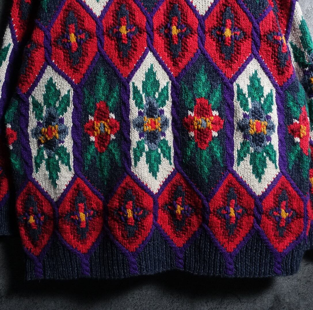 Multicolor Flower Motif Design Ramie Cotton Hand Knit