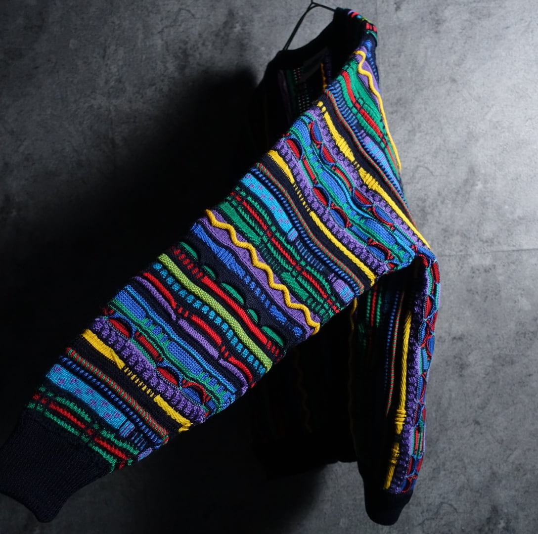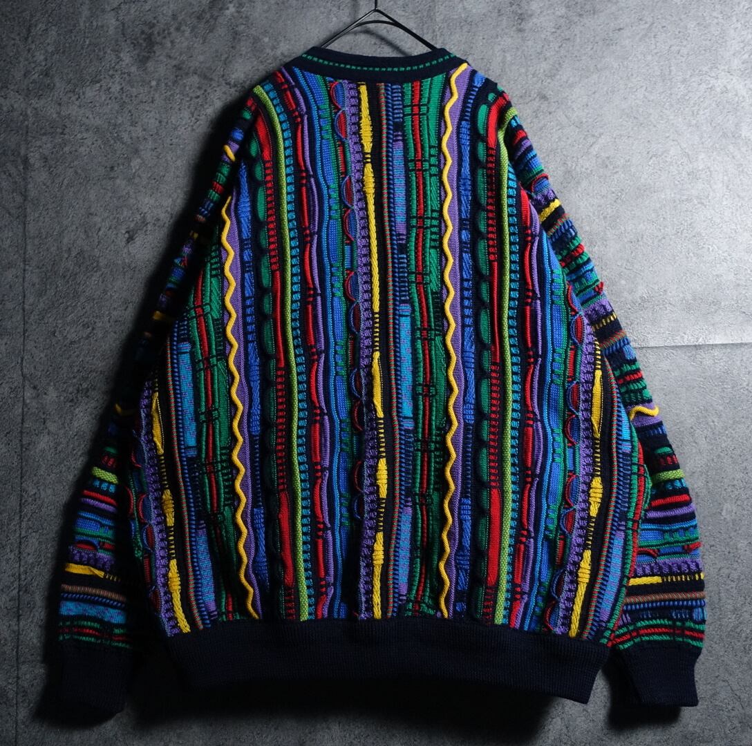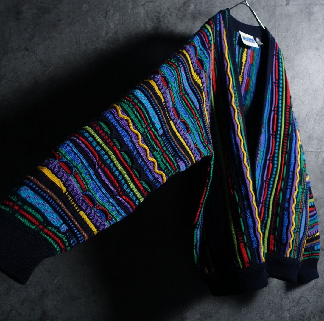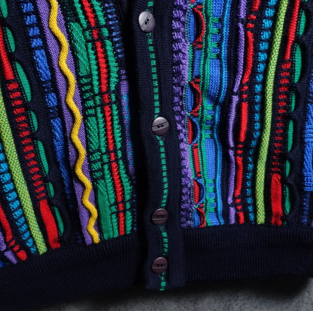 90s Multicolor 3D Pattern Design Knit Cardigan