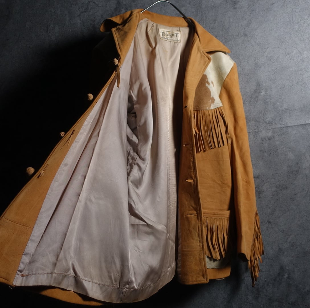 70s Beige Halaco & Fringe Design Western Leather Jacket