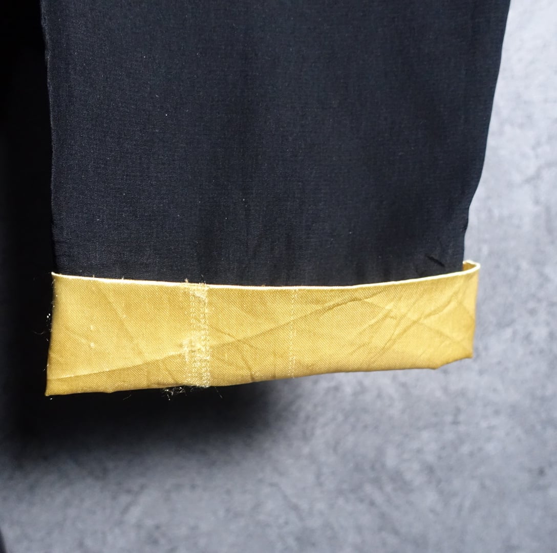 裏地と袖先がゴールドのサテン生地となっており、高級感のある仕上がりとなっています。