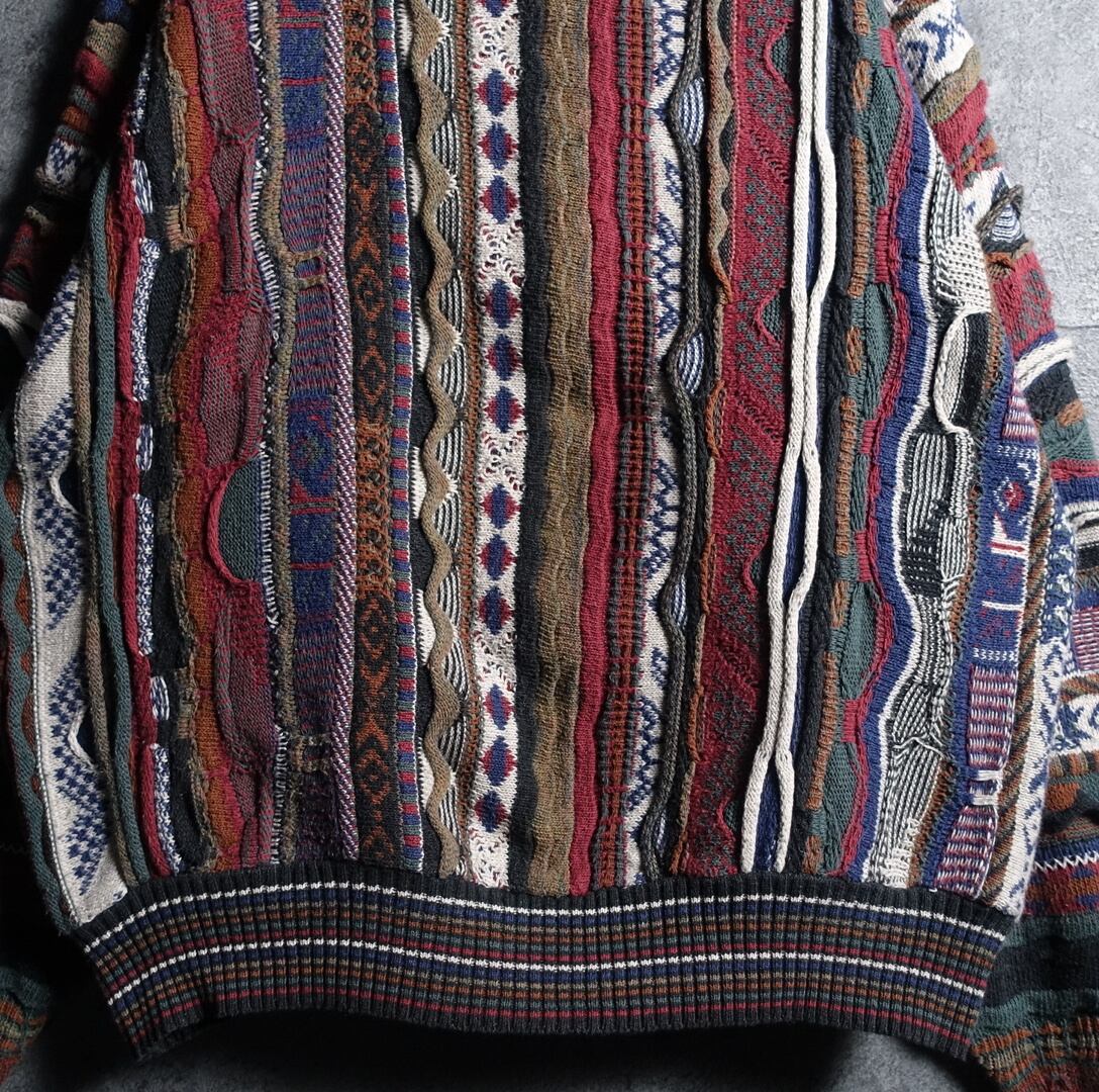 90s “ROUNDTREE&YORKE” Multicolor 3D Pattern Design Cotton Knit