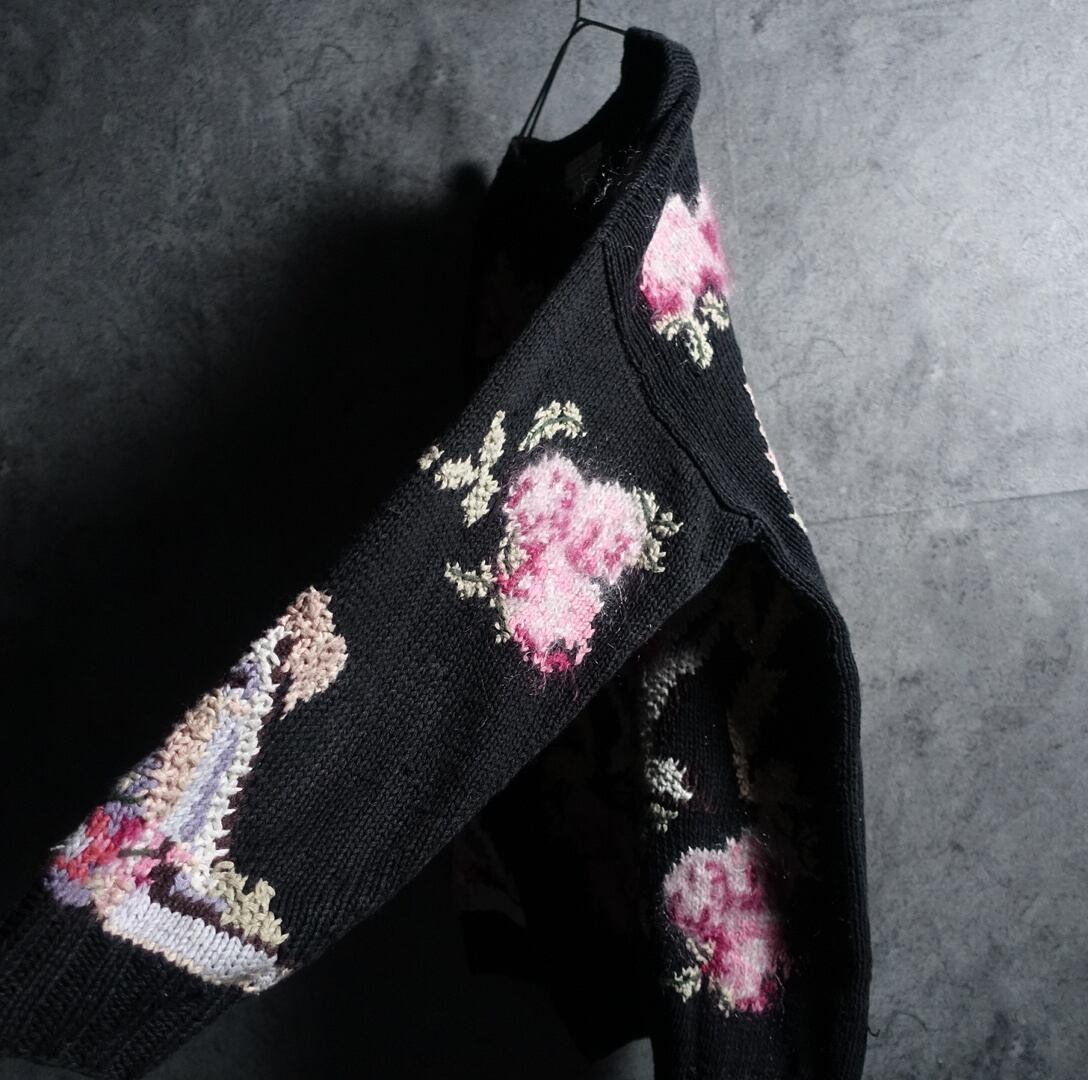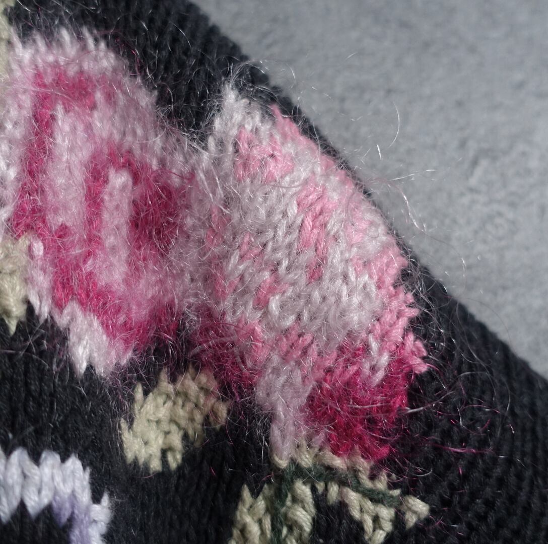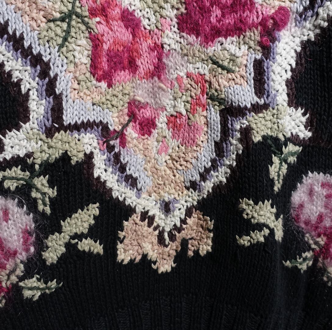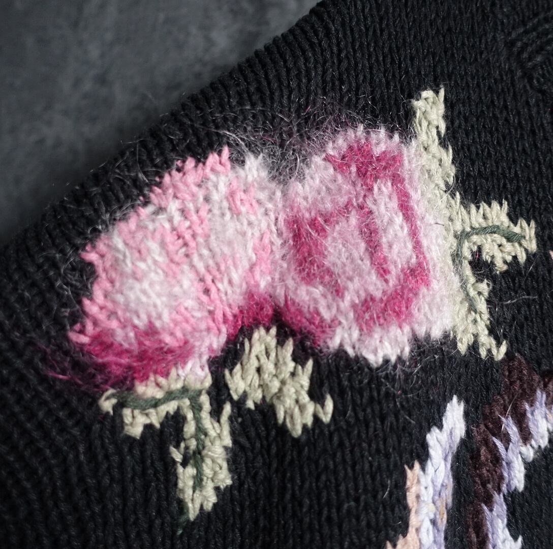Black Flower Motif Design Ramie Cotton Hand Knit