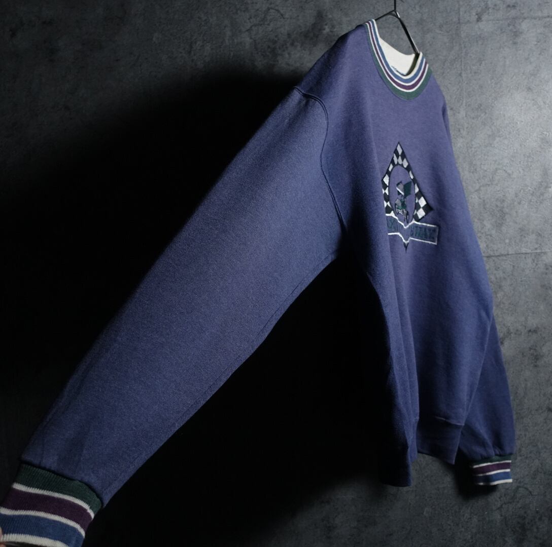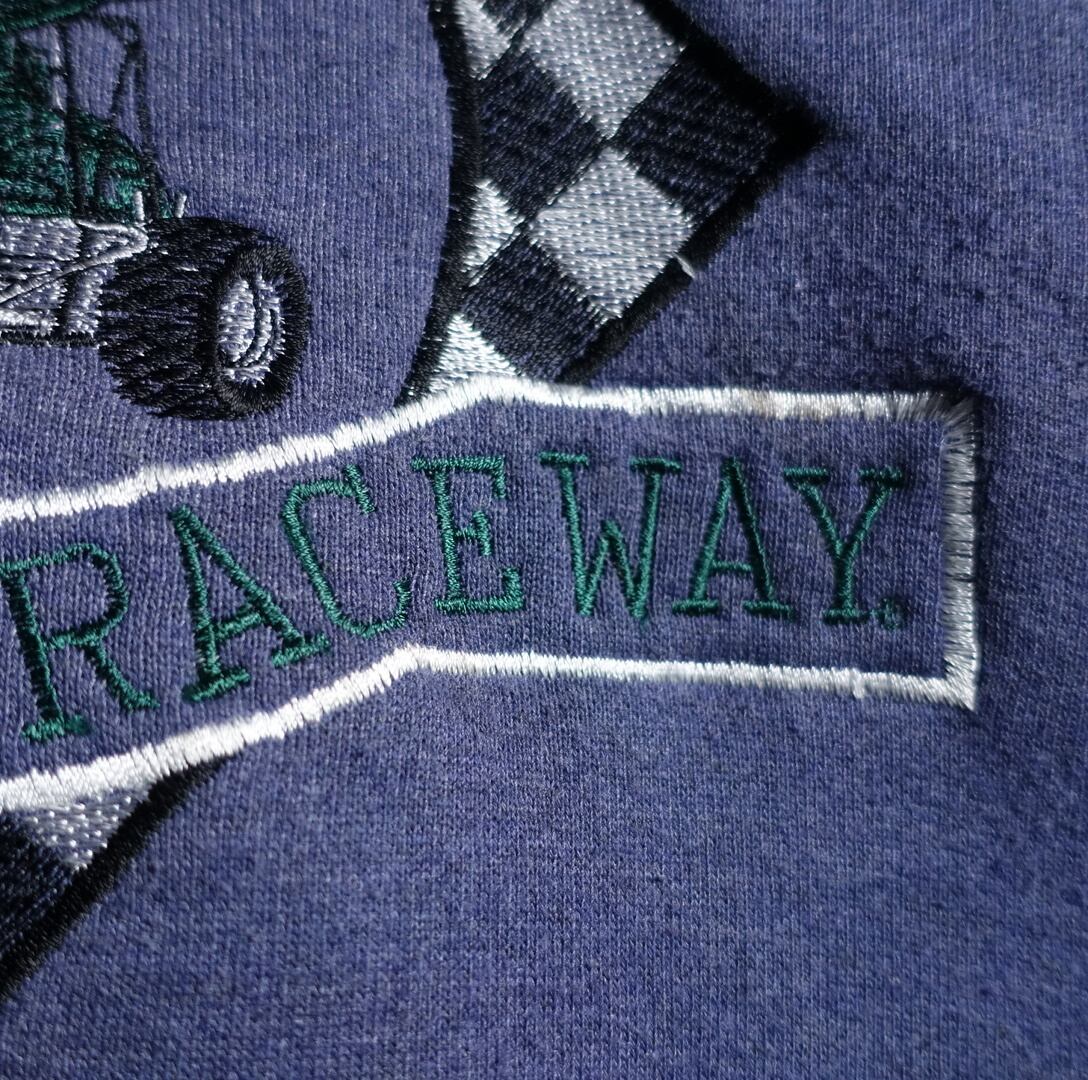 90s “JERZEES” Blue Car Motif Embroidery Design Sweat