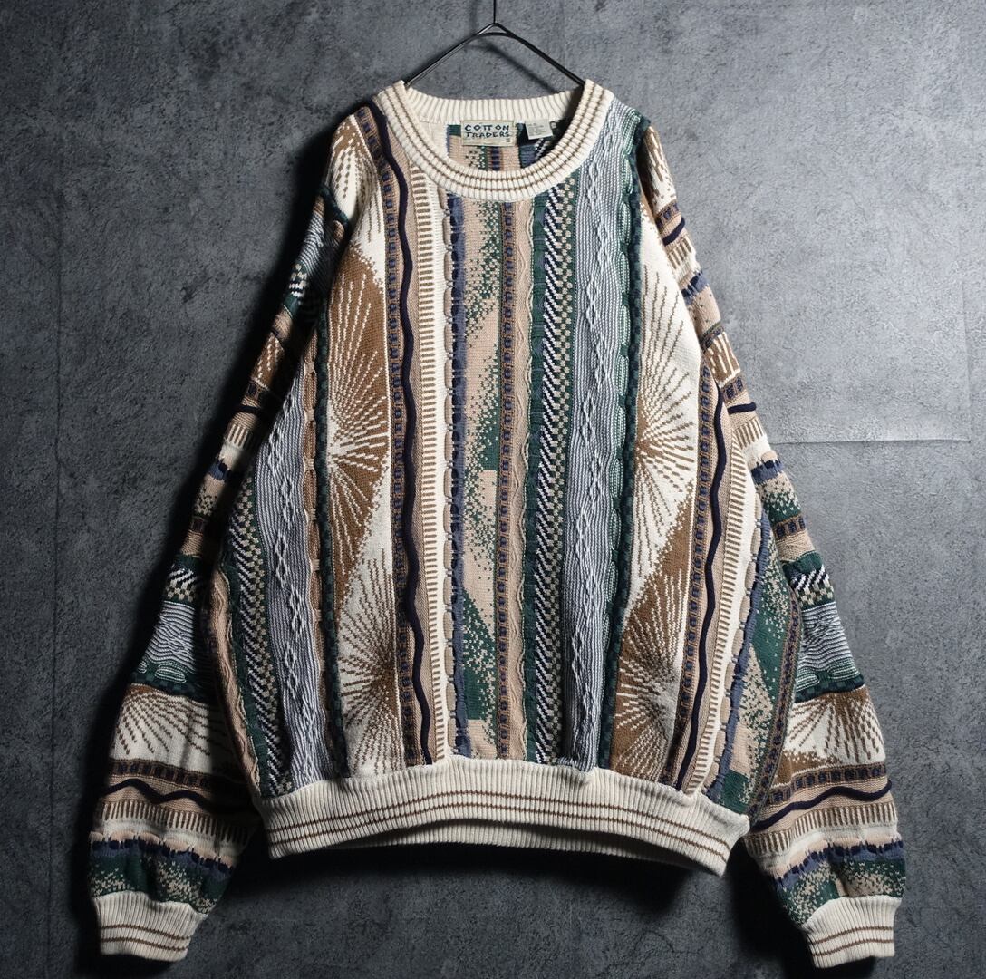 90s “COTTON TRADERS” Multicolor 3D Pattern Design Cotton Knit