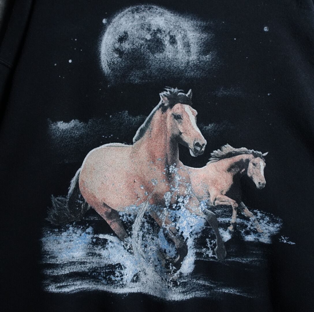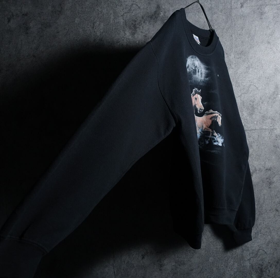 00s “GILDAN” Black Horse Landscape Print Design Sweat