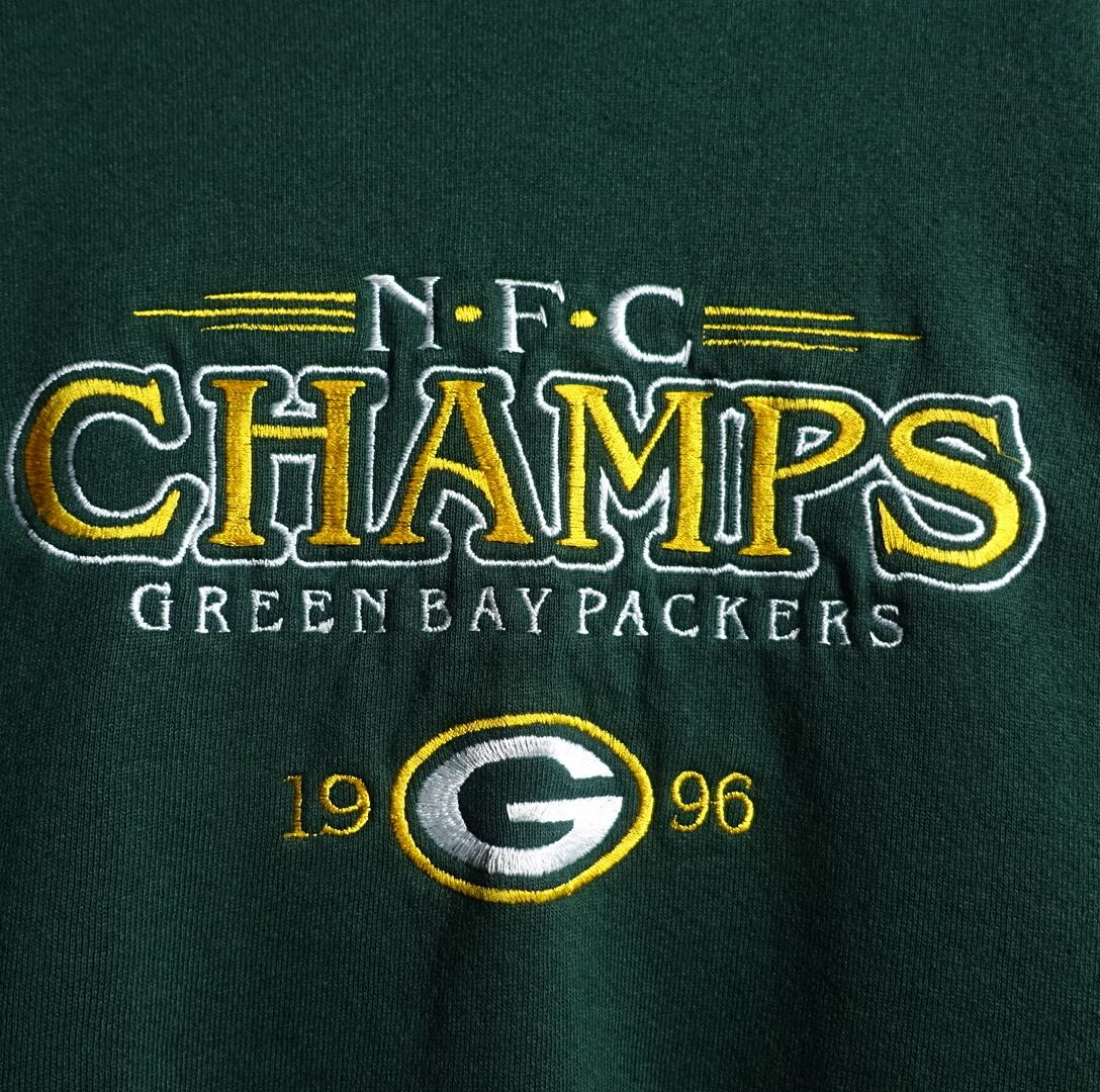 90s “FRUIT OF THE LOOM” Green PACKERS Logo Embroidery Design Sweat