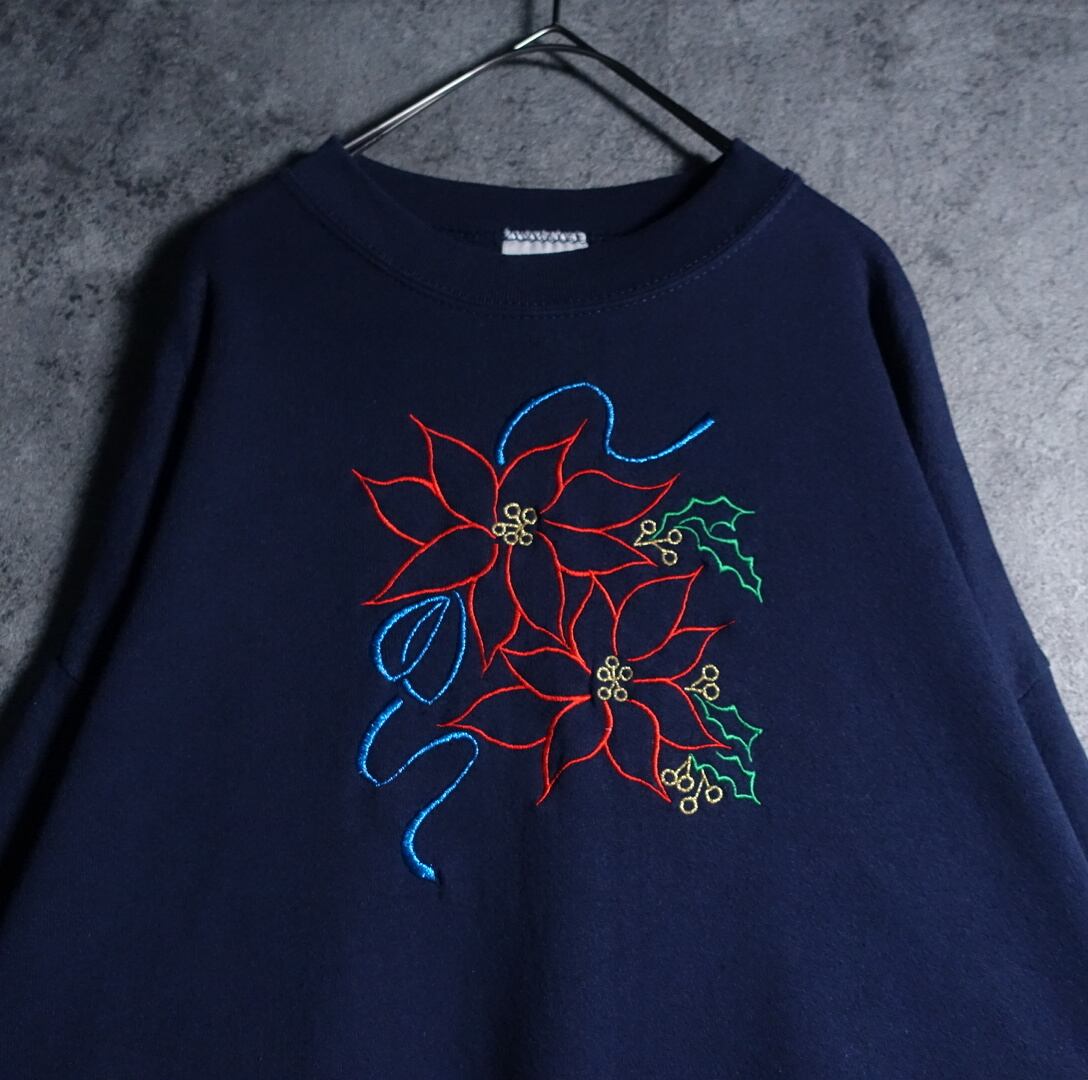 90s “TULTEX” Navy Flower Motif Embroidery Design Sweat
