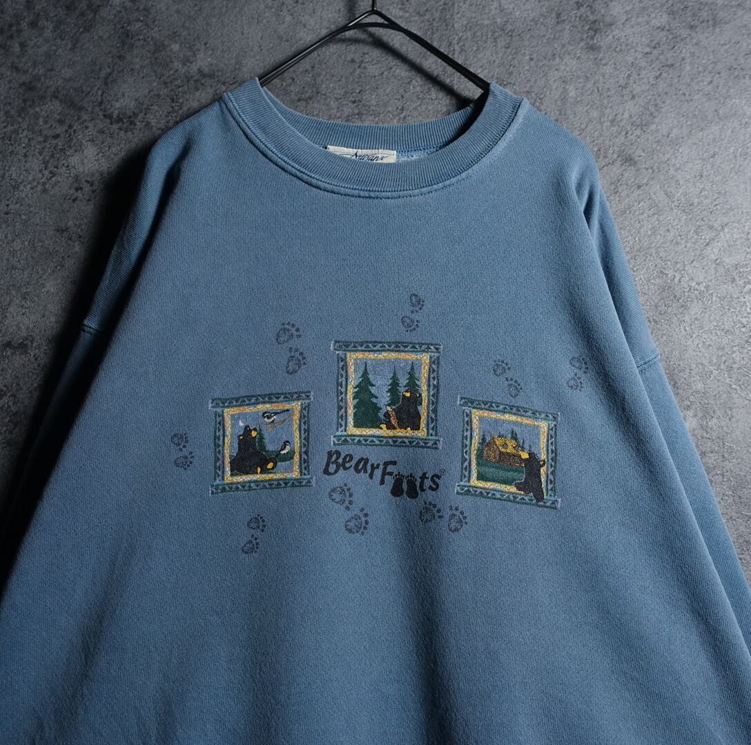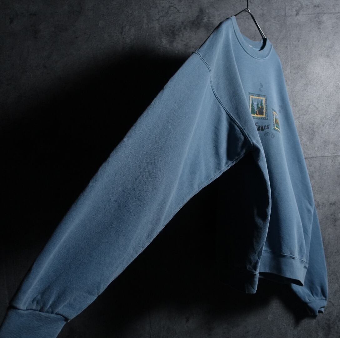 90s Light Blue Bear Animal Print Design Sweat
