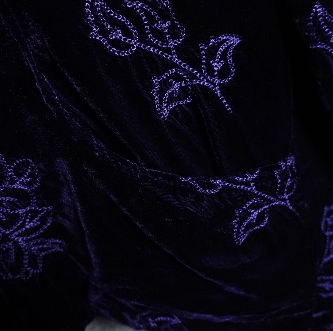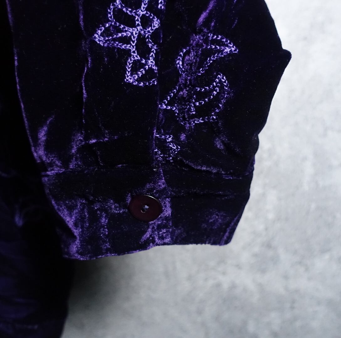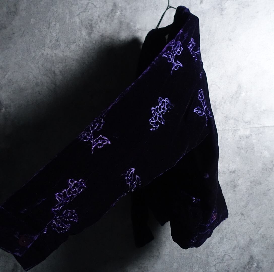 “Coldwater Creek” Purple Flower Motif Embroidery Design Velor Short Jacket