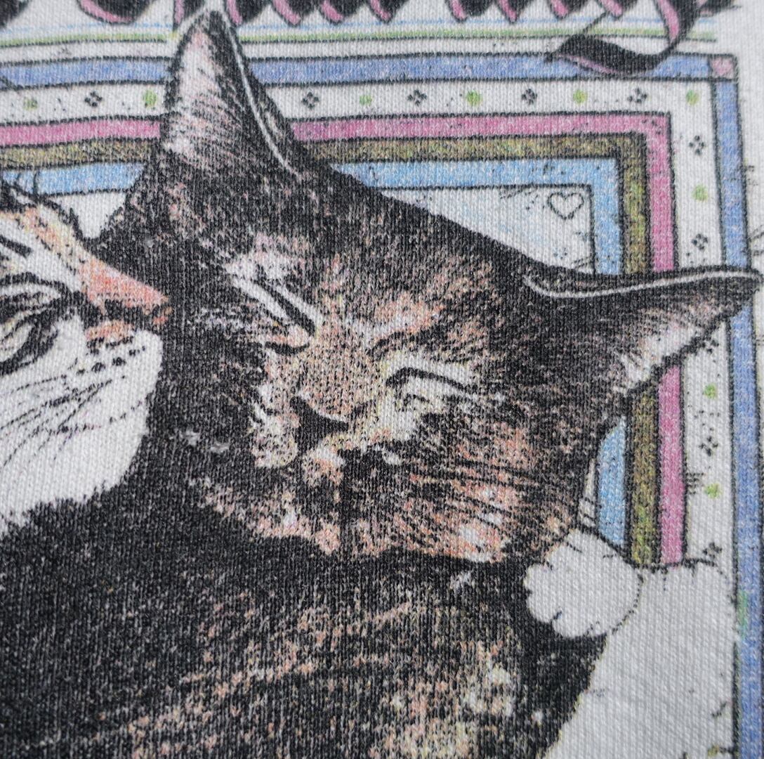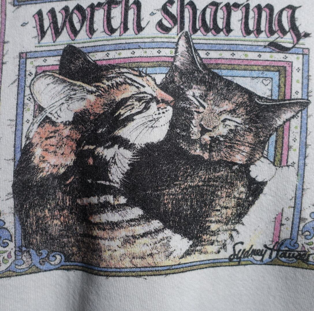 90s “JERZEES” White Cat Motif Picture Print Design Sweat