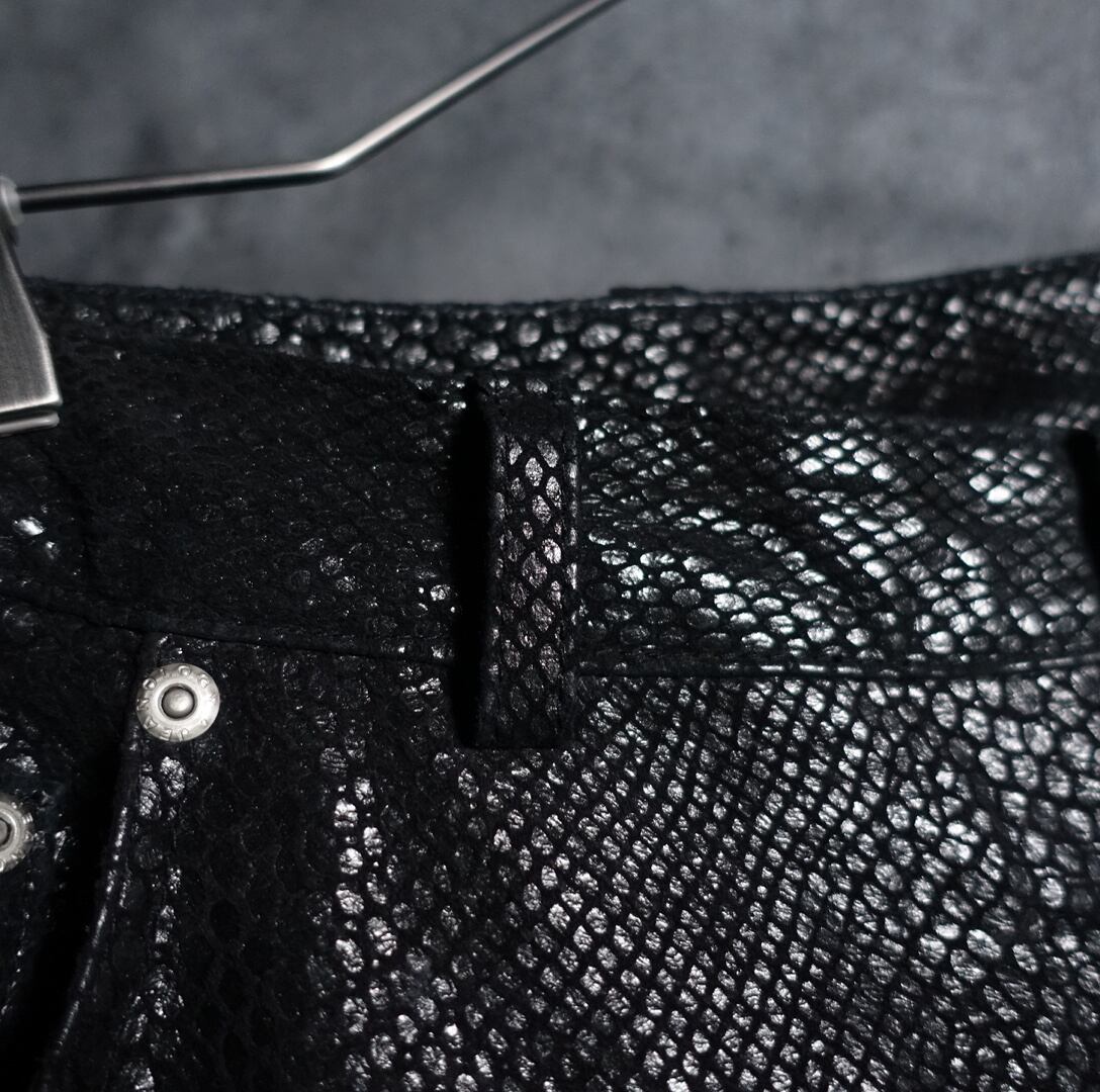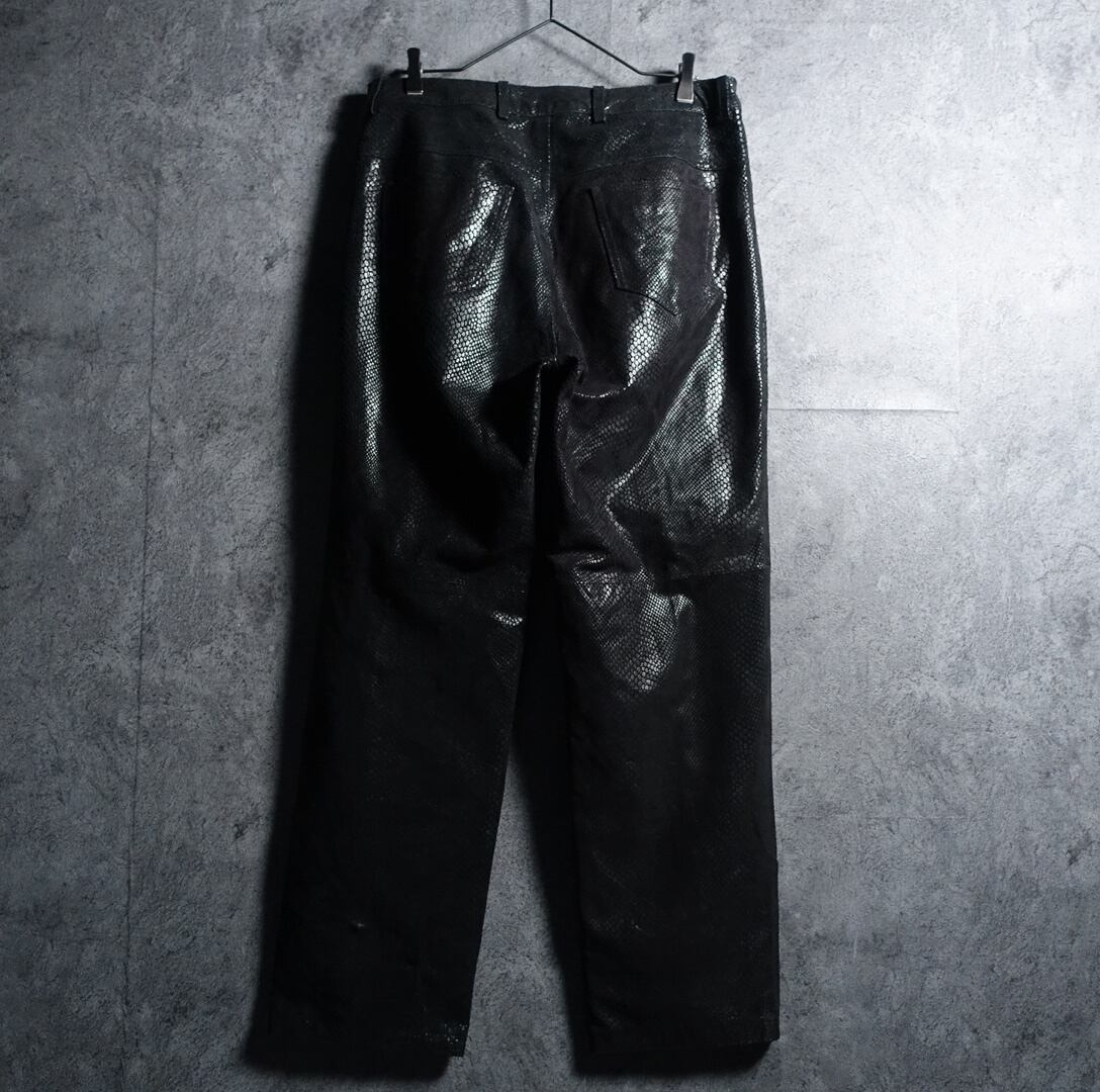 Black Crocodile Embossed Design Wide Baggy Leather Pants