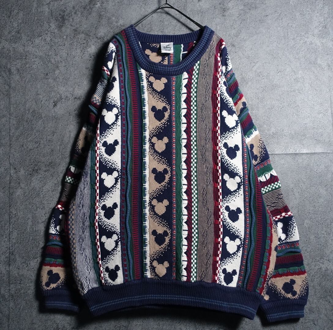 90s “Disney” Multicolor 3D Mickey Pattern Design Cotton Knit