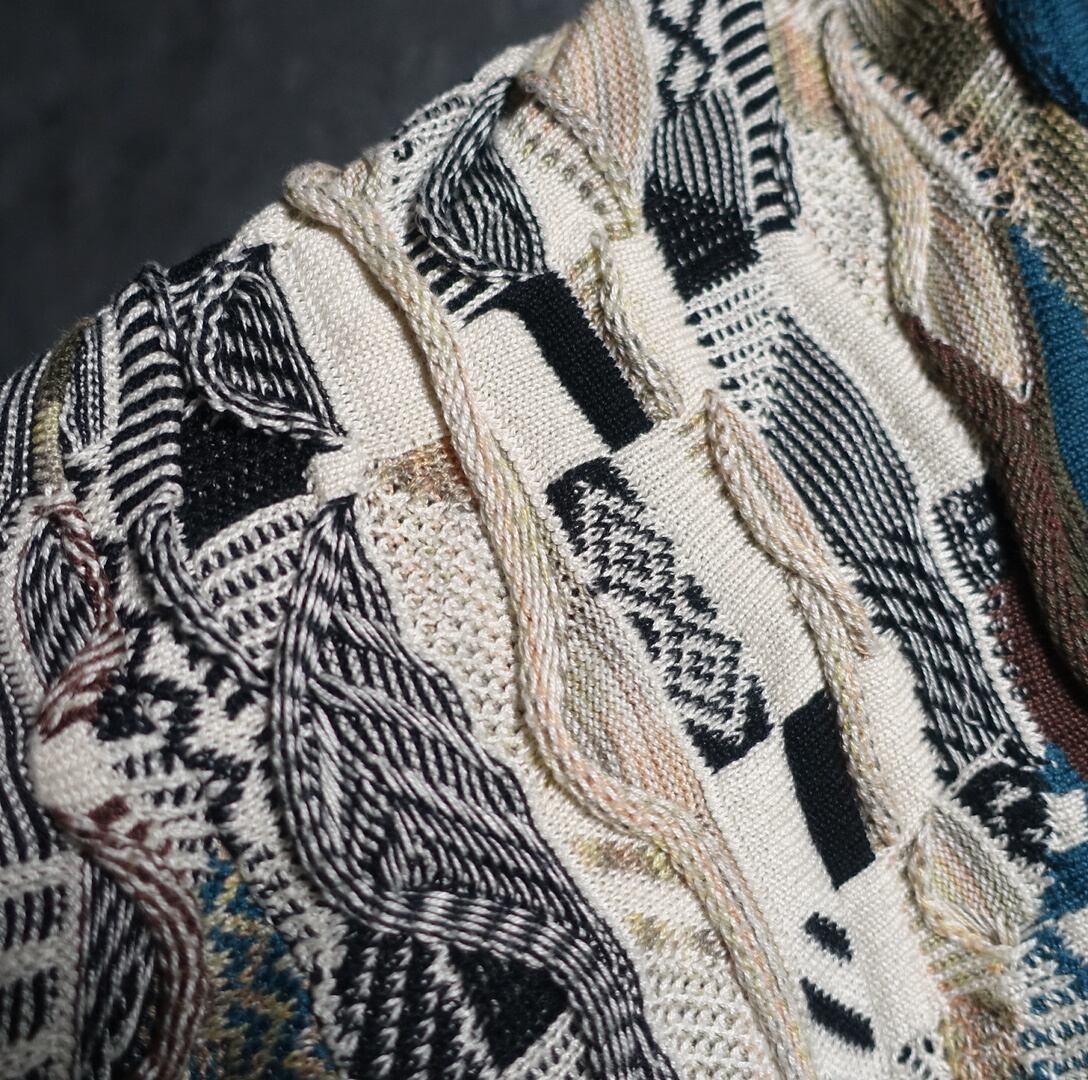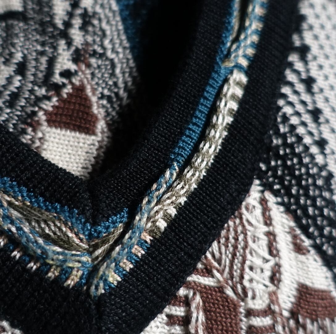 90s “TUNDRA” Multicolor 3D Pattern Design Mercerized Cotton V-Neck Knit