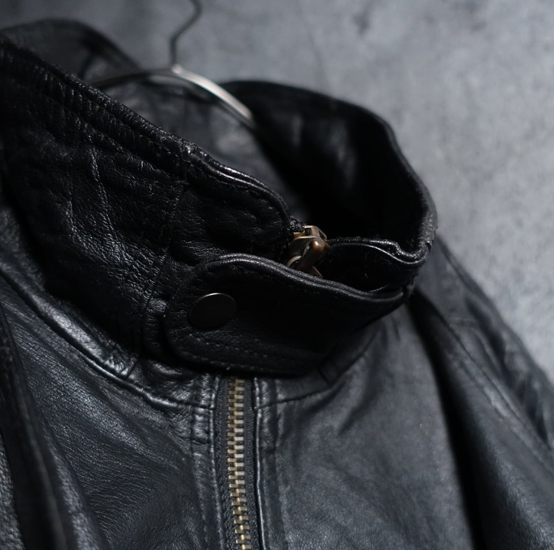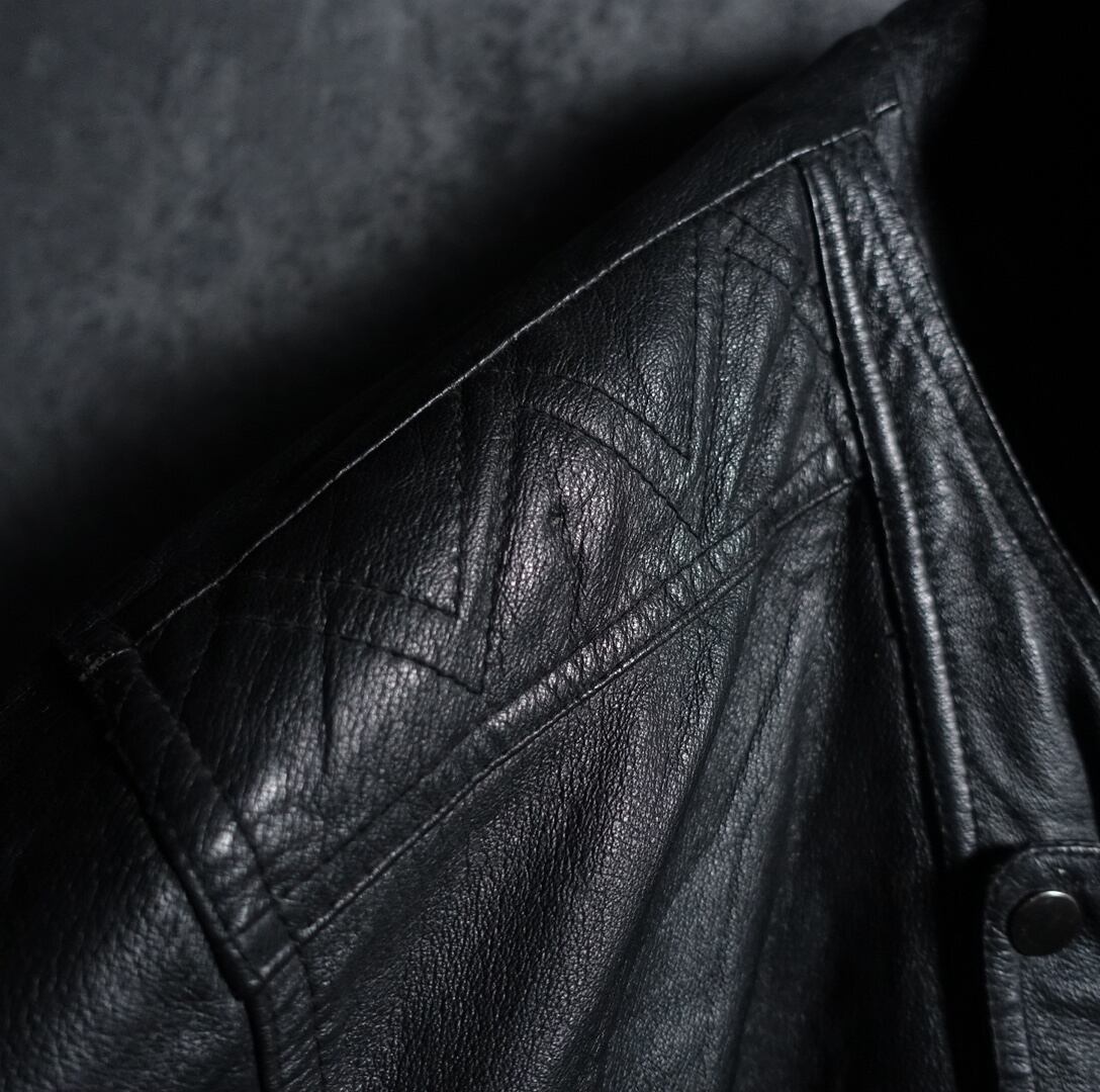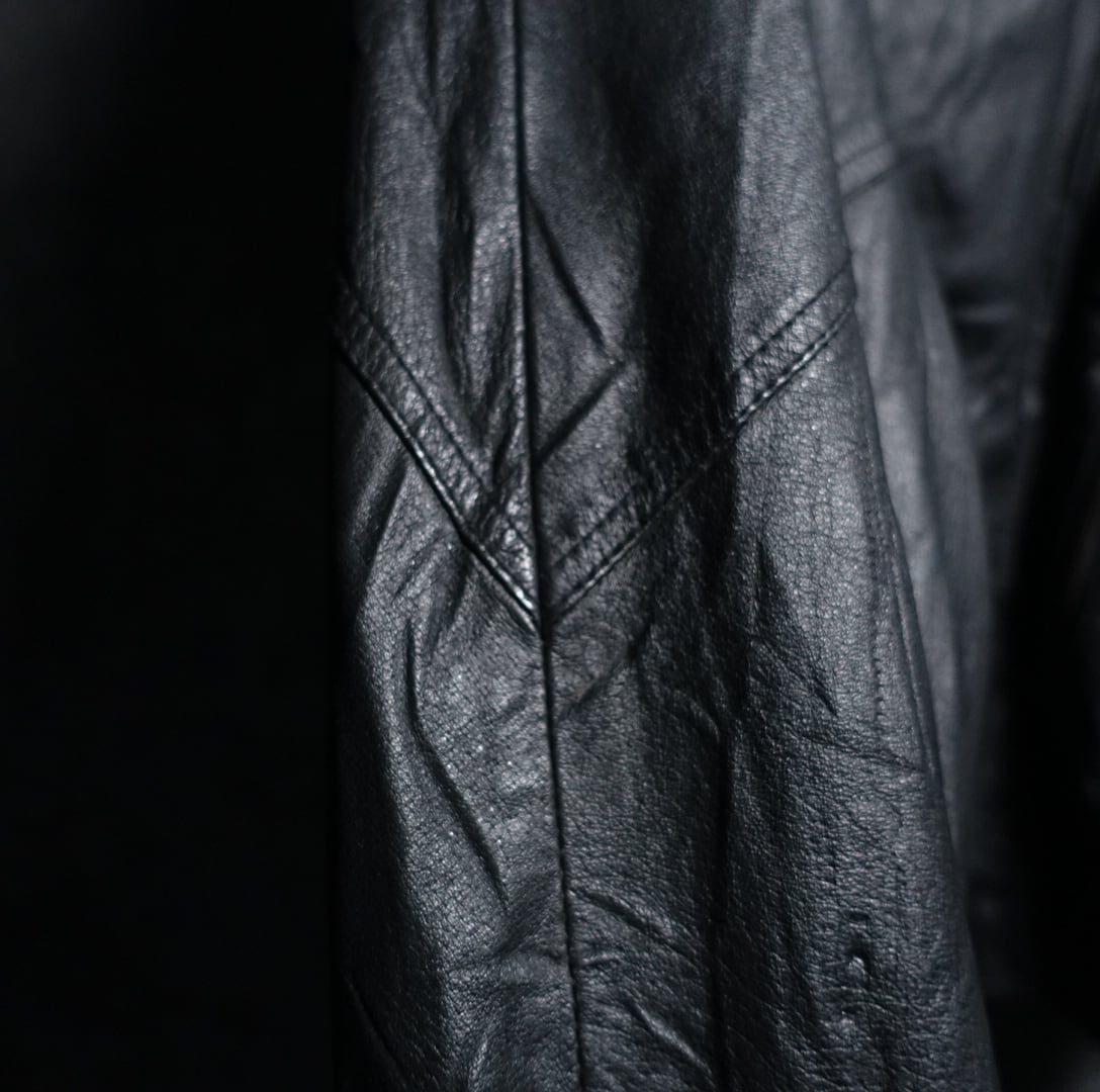 Black Deformed Design Leather Zip Blouson