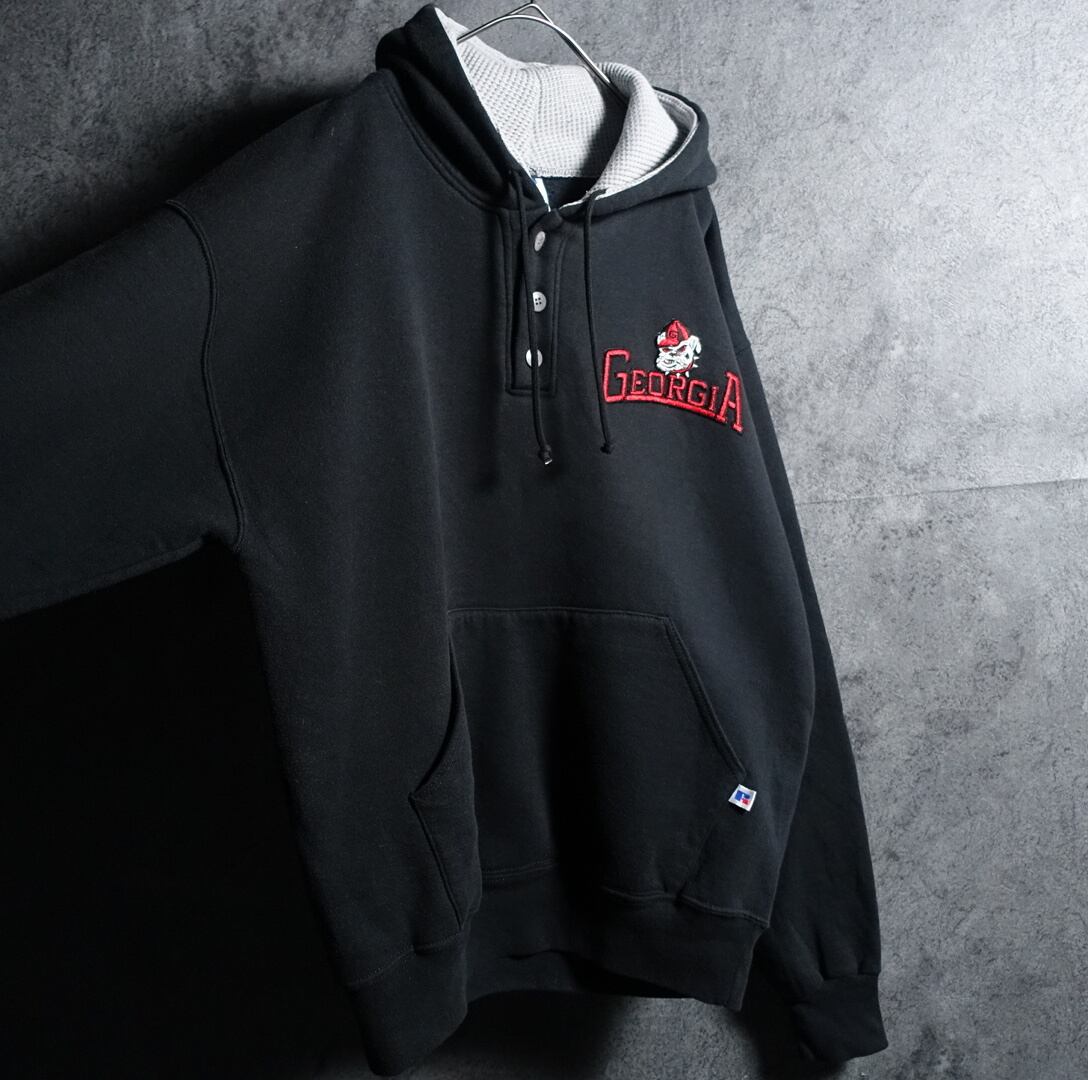 90s “RUSSELL” Black Dog Embroidery Design Sweat Parka