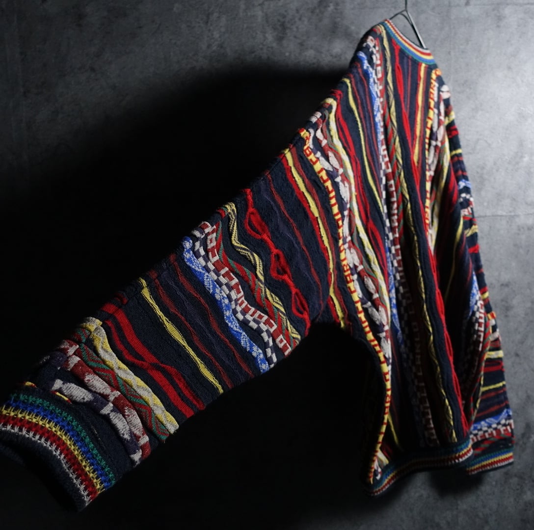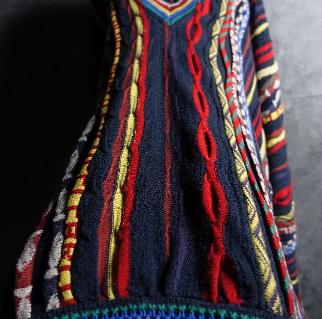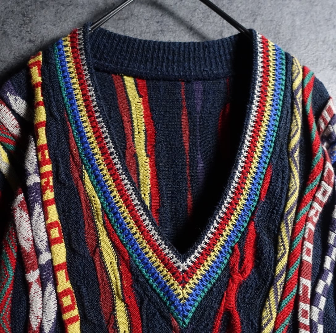 EURO Multicolor 3D Pattern Design V-Neck Cotton Knit