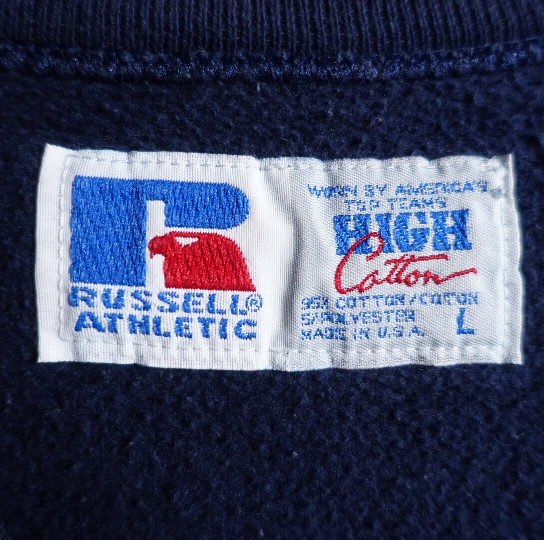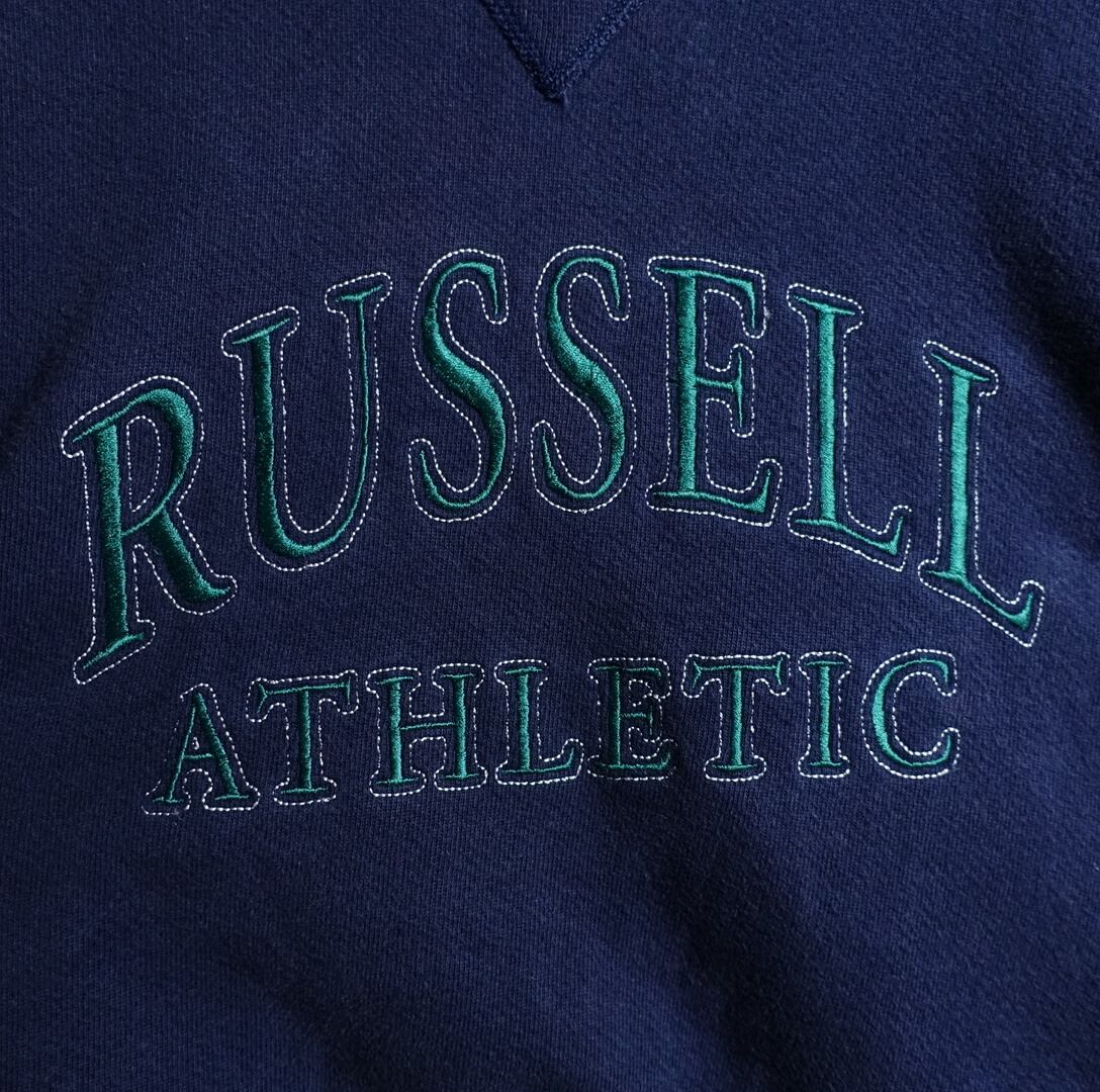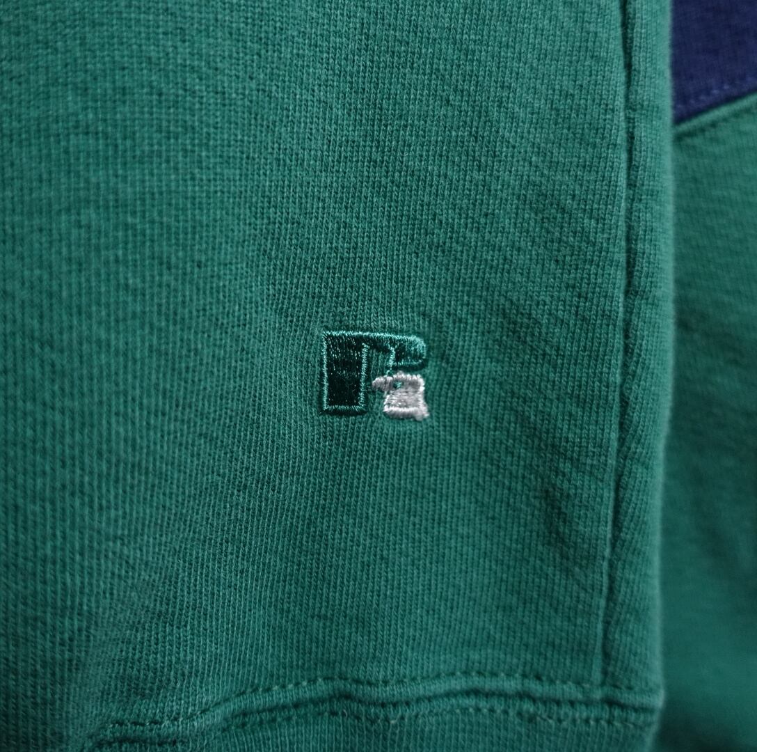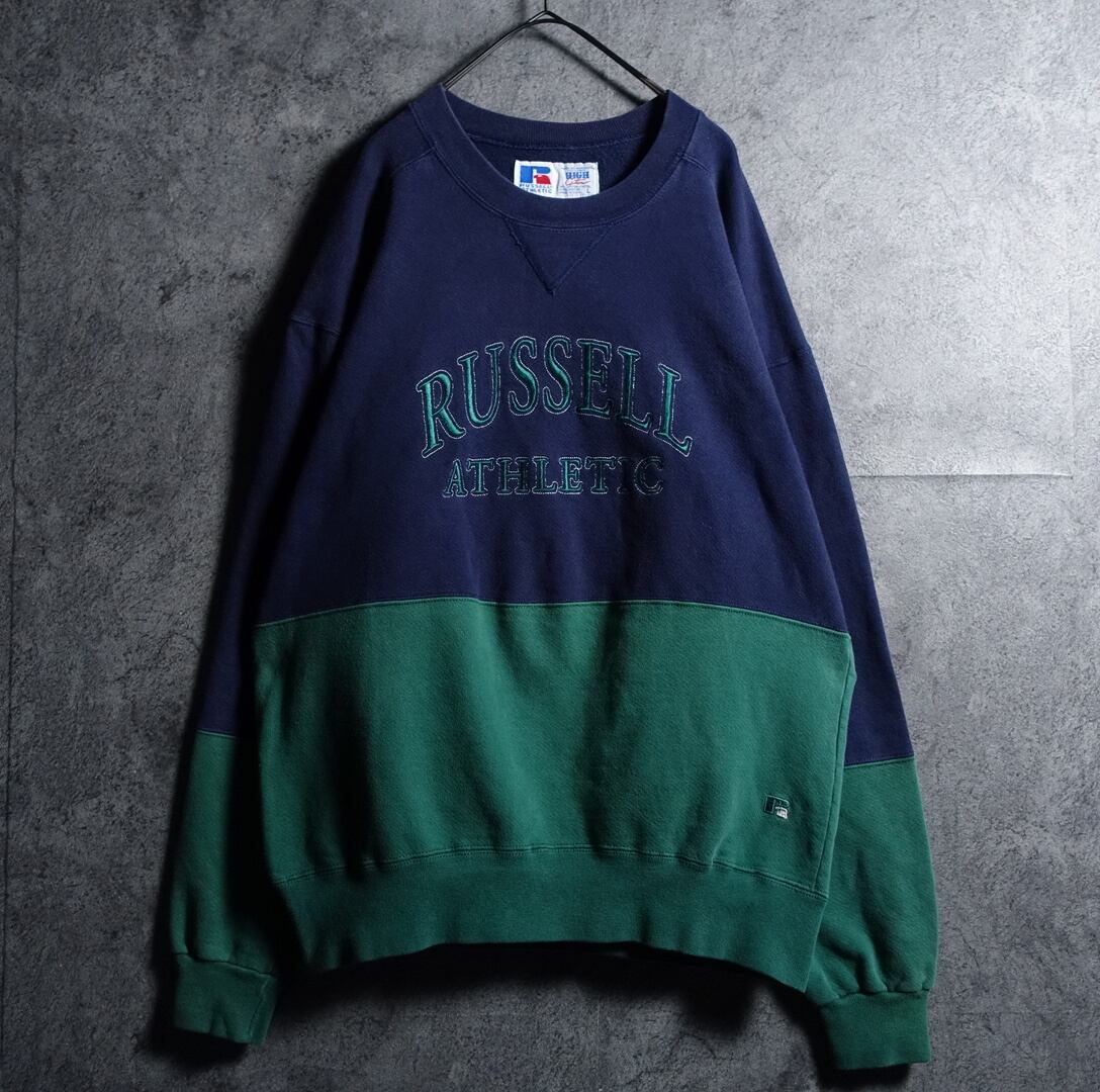 90s “RUSSELL”Navy & Green Logo Embroidered Design Sweat