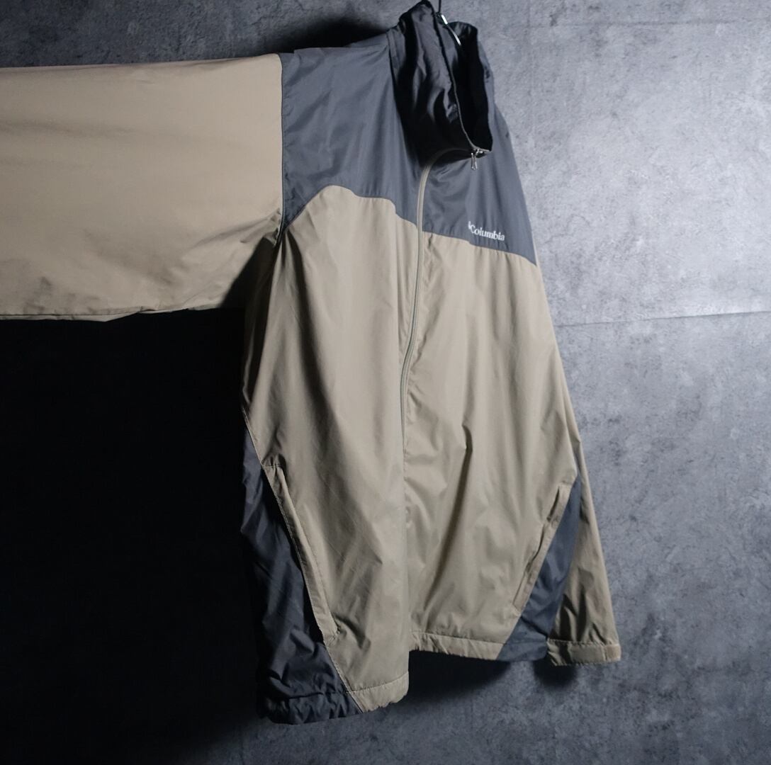 “Columbia” Beige & Gray Logo Embroidery Packable Nylon Jacket