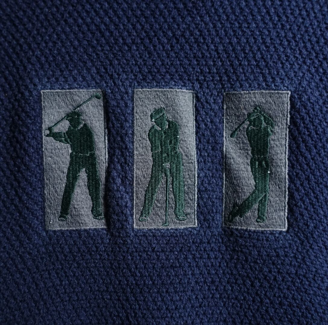 Navy Golfer Motif Embroidered Design Cotton Knit