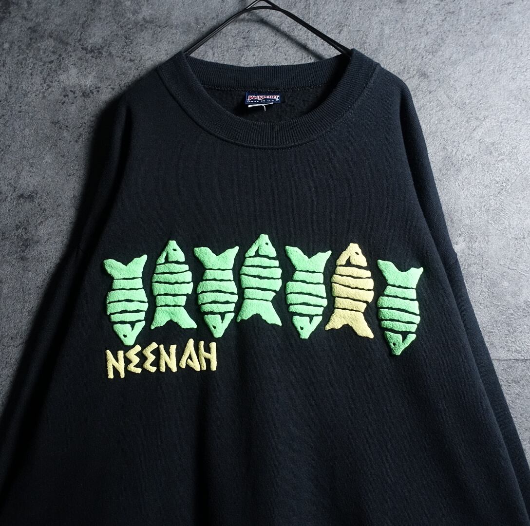 90s "JANSPORT" Black Fish Motif Foam Print Design Sweat
