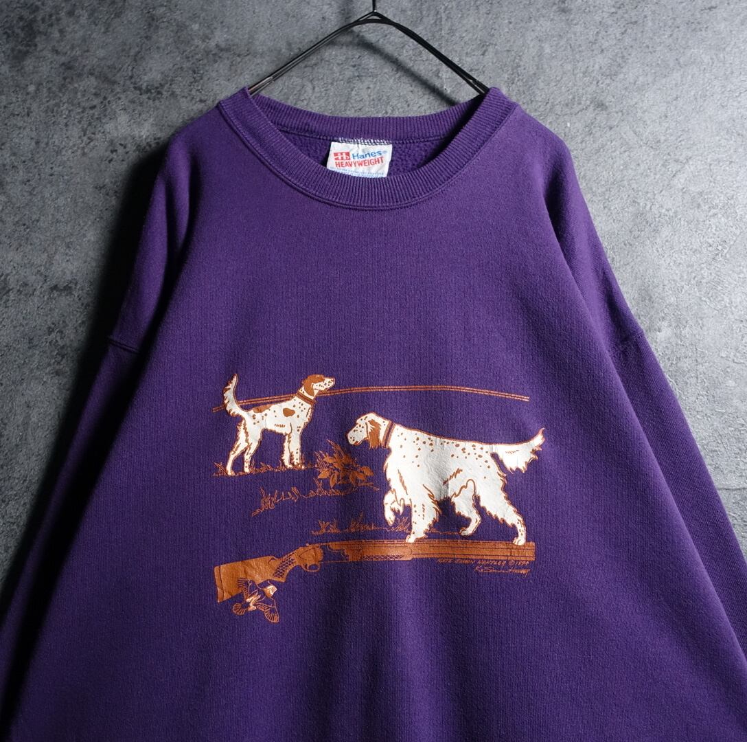 90s "Hanes" Purple Dog Motif Print Design Sweat