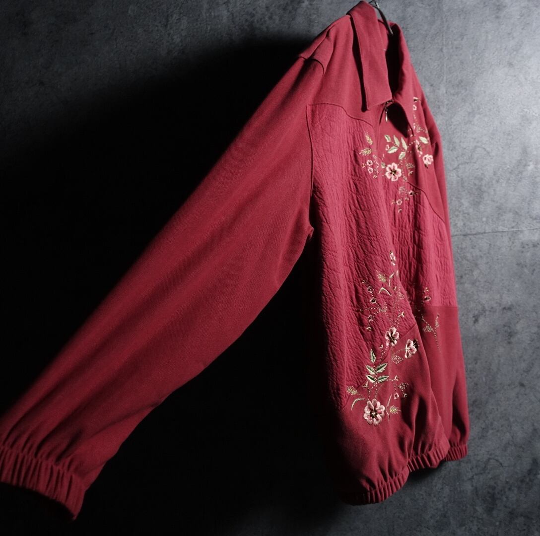 Salmon Pink Flower Motif Embroidery Design Swing Top Blouson