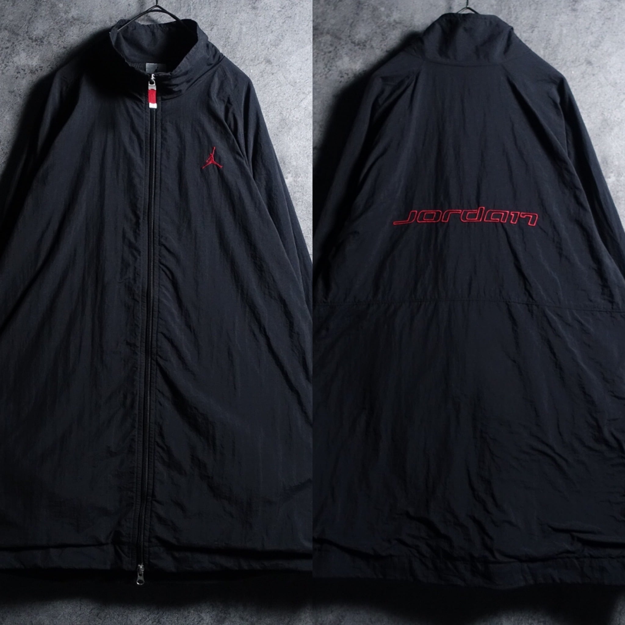 "JORDAN" Black Logo Embroidered Design Double Zip Nylon Track Jacket