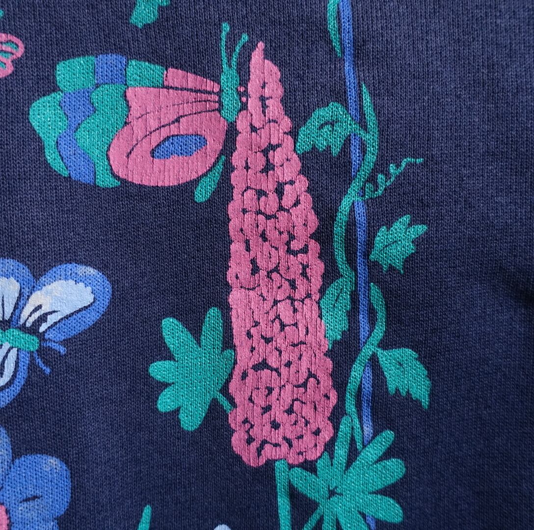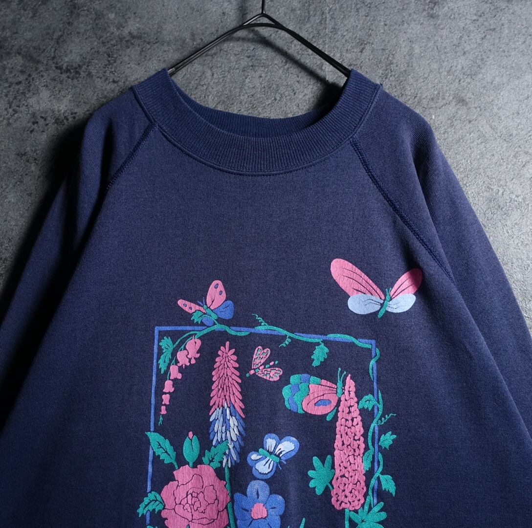 90s "Hanes" Navy Flower & Butterfly Art Print Design Sweat