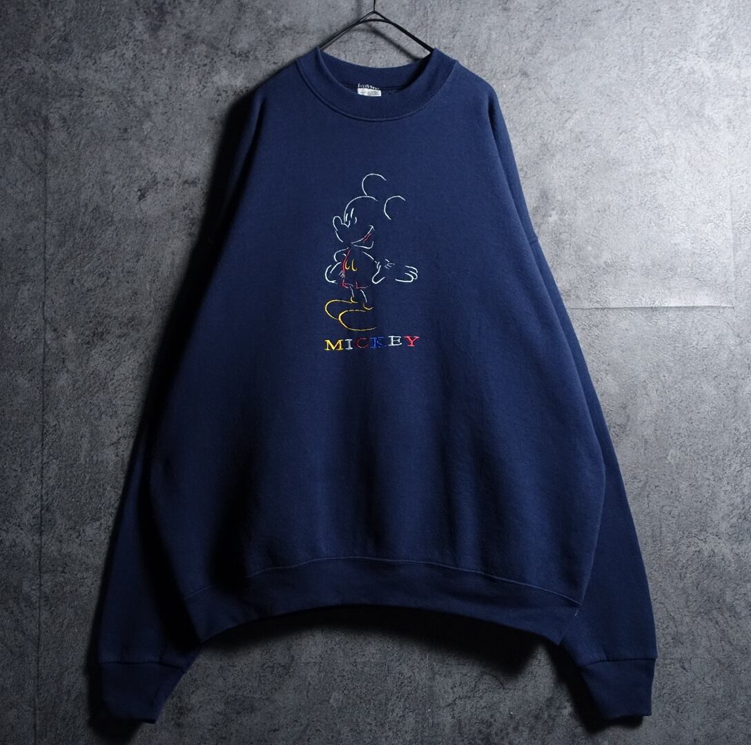 90s "FRUIT OF THE LOOM" Navy Mickey Mouse Embroidered Design Sweat
