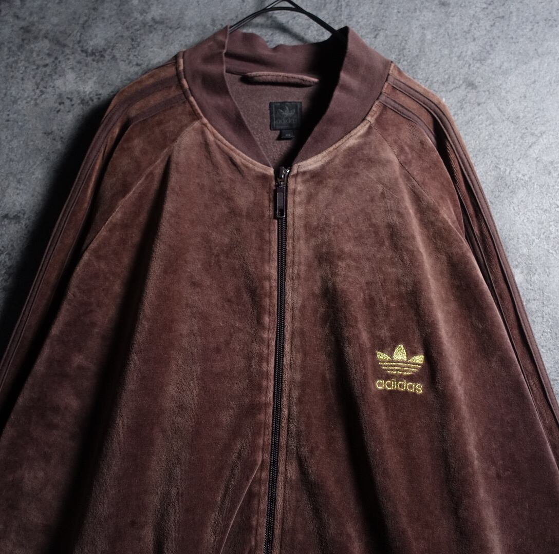 00s “adidas” Brown Logo Embroidered & 3-Stripe Design Velour Track Jacket