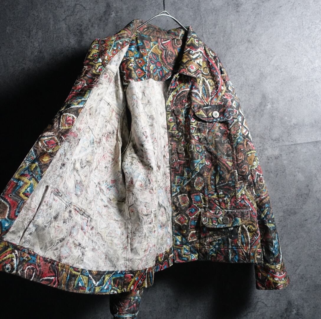 Multicolor Abstract Artistic Pattern 4 Pocket Desgin Trucker Jacket