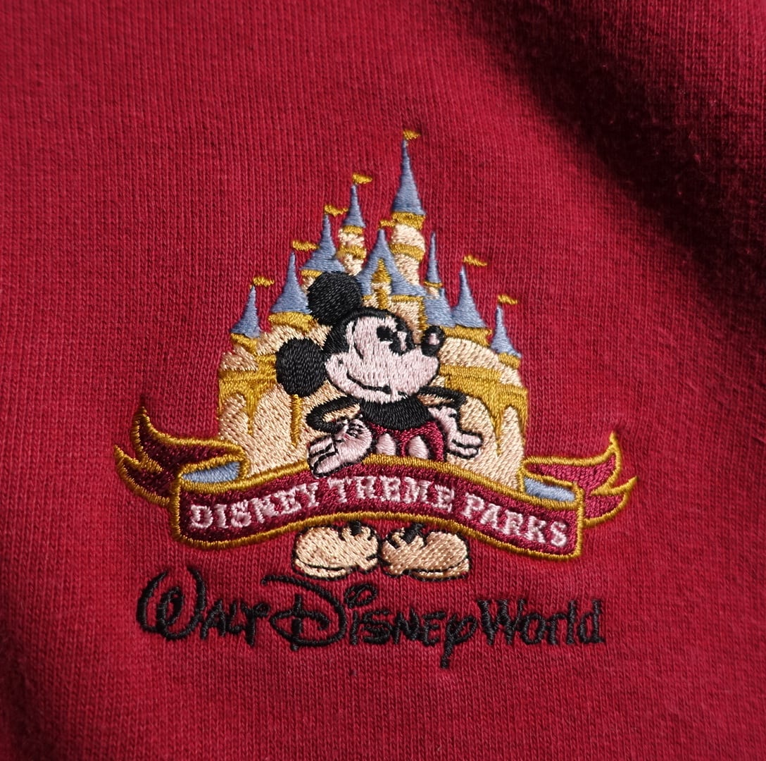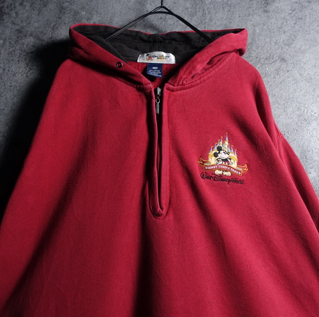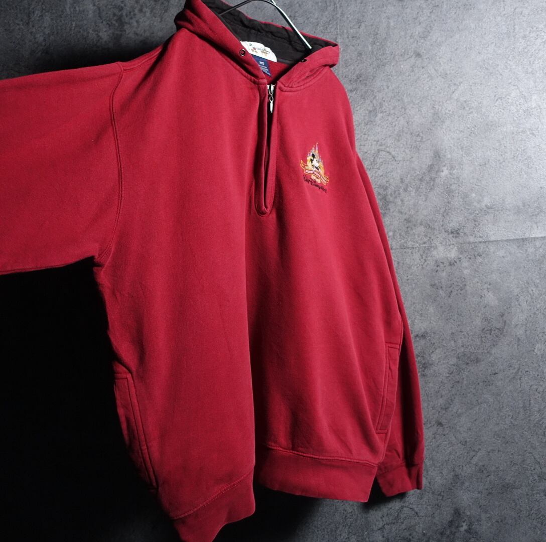 90s "Disney" Red Mickey Embroidered Design Half Zip Sweat Parka