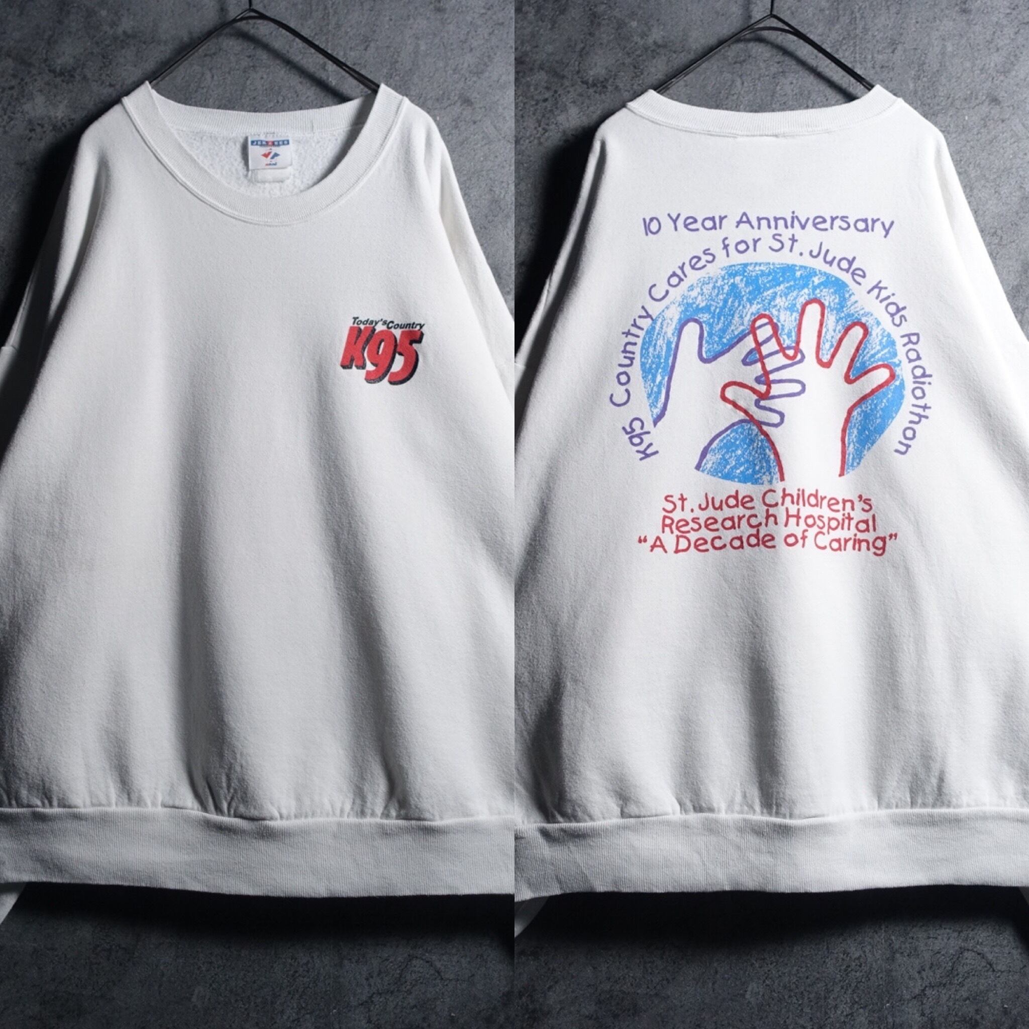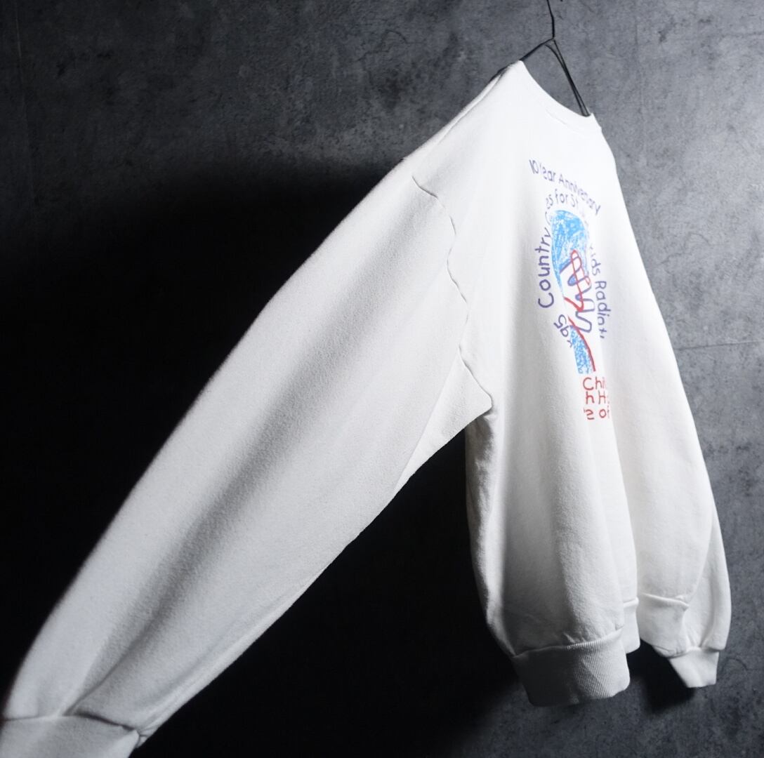 90s "JERZEES" White Hand Motif Print Design Sweat