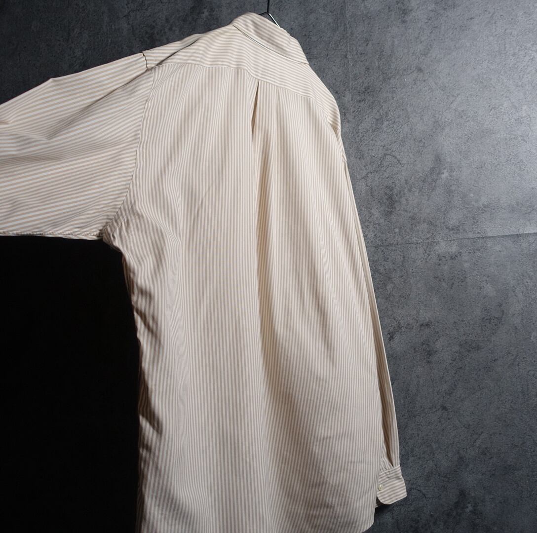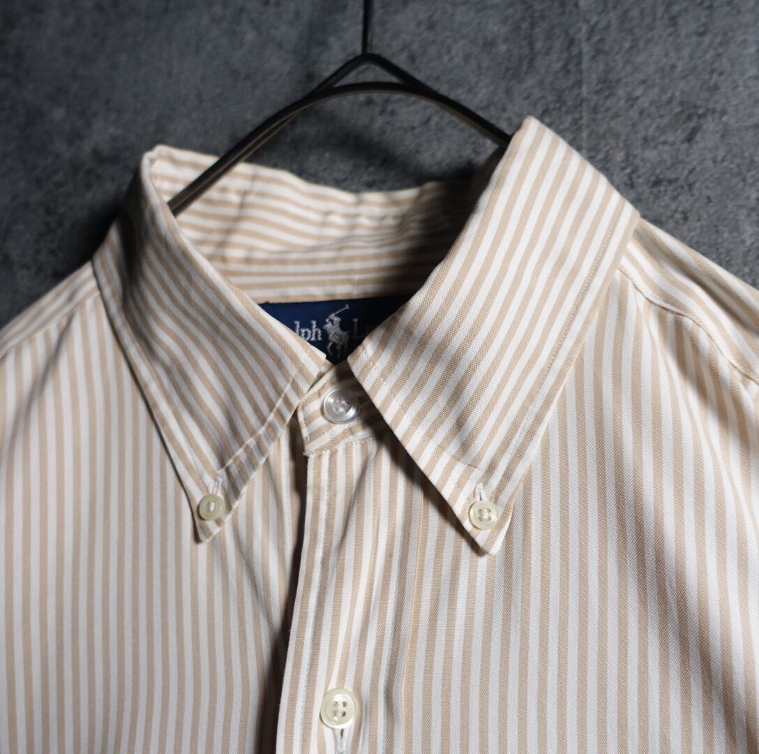 "Ralph Lauren" White & Beige Stripe Logo Embroidery Design BD Shirt