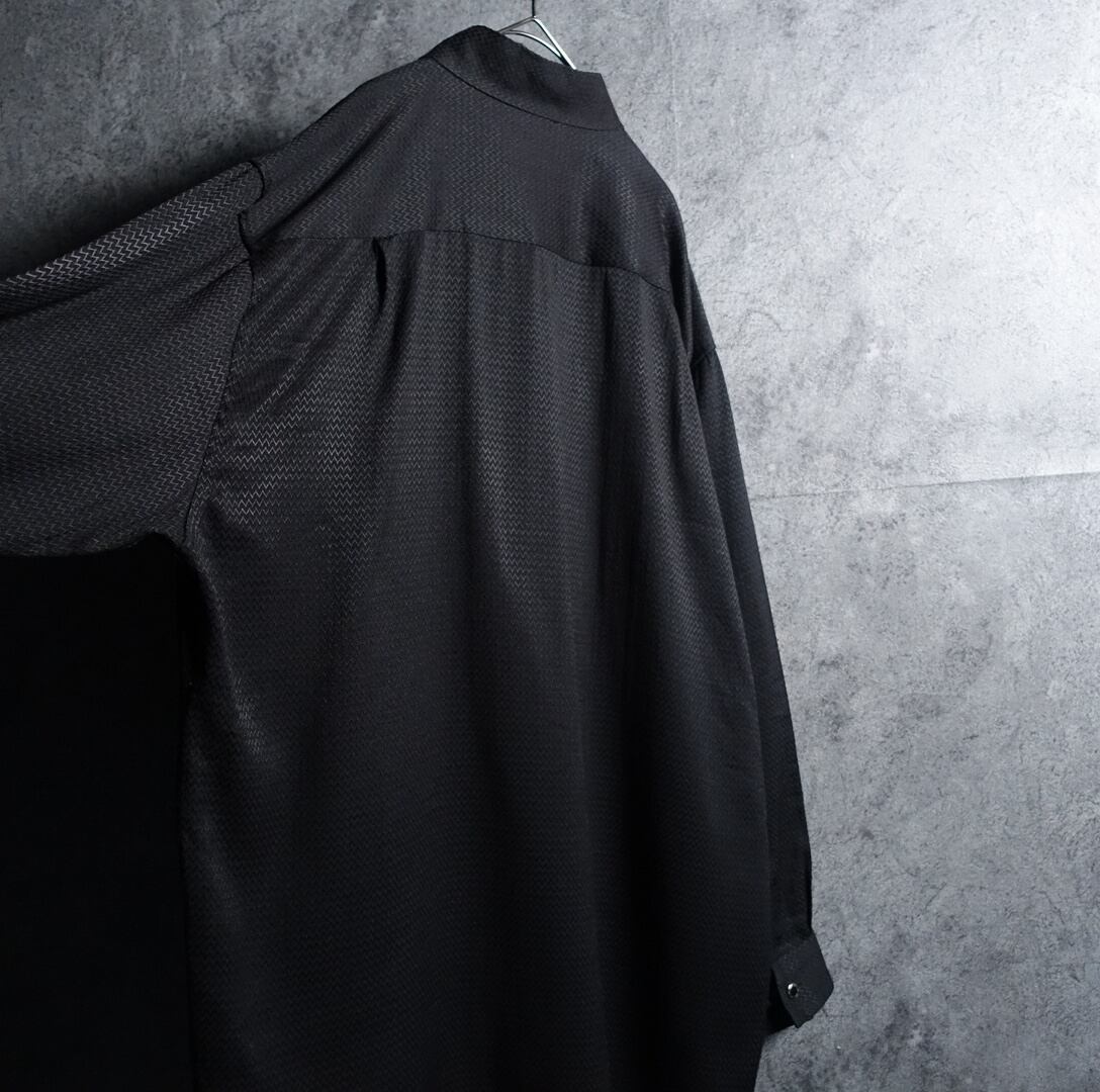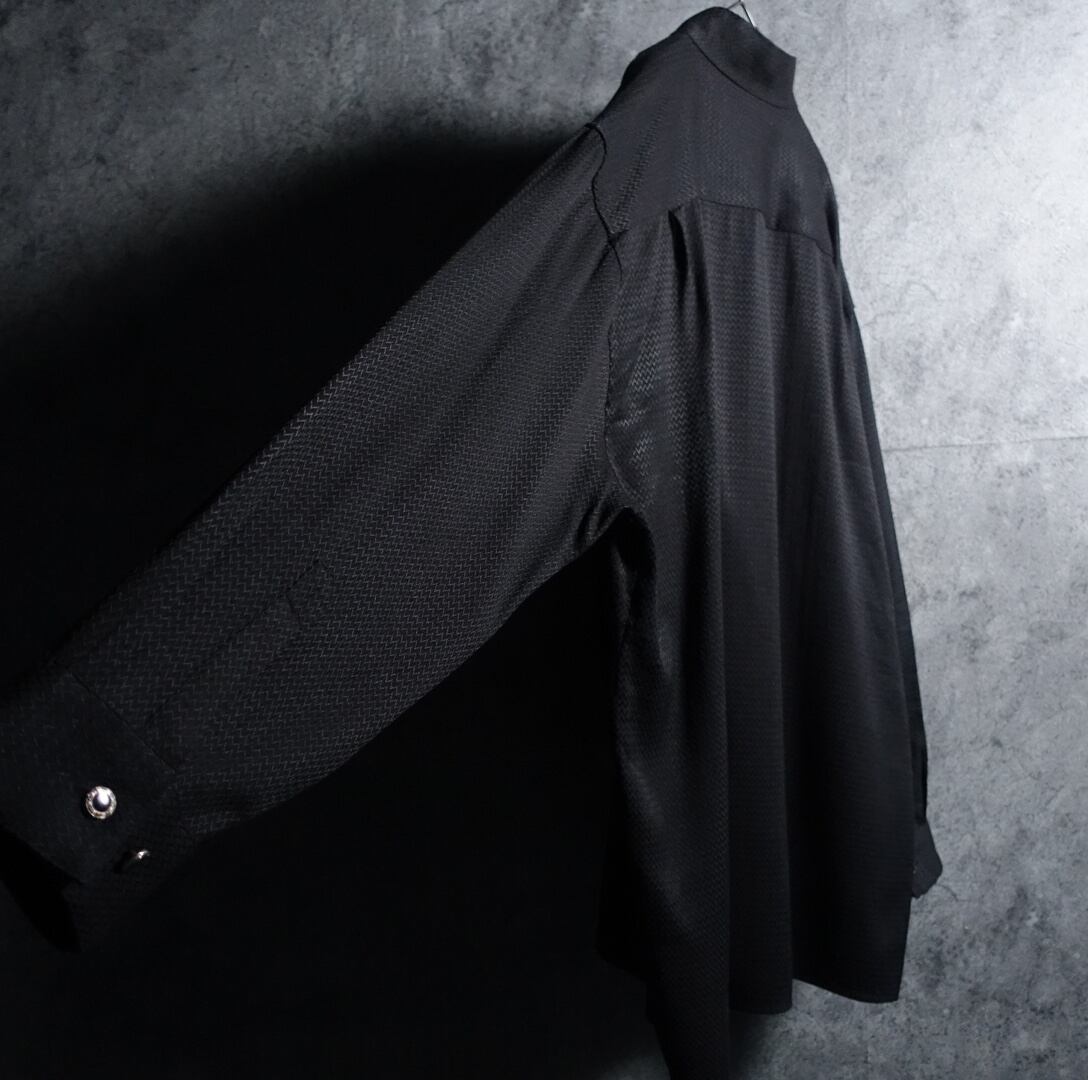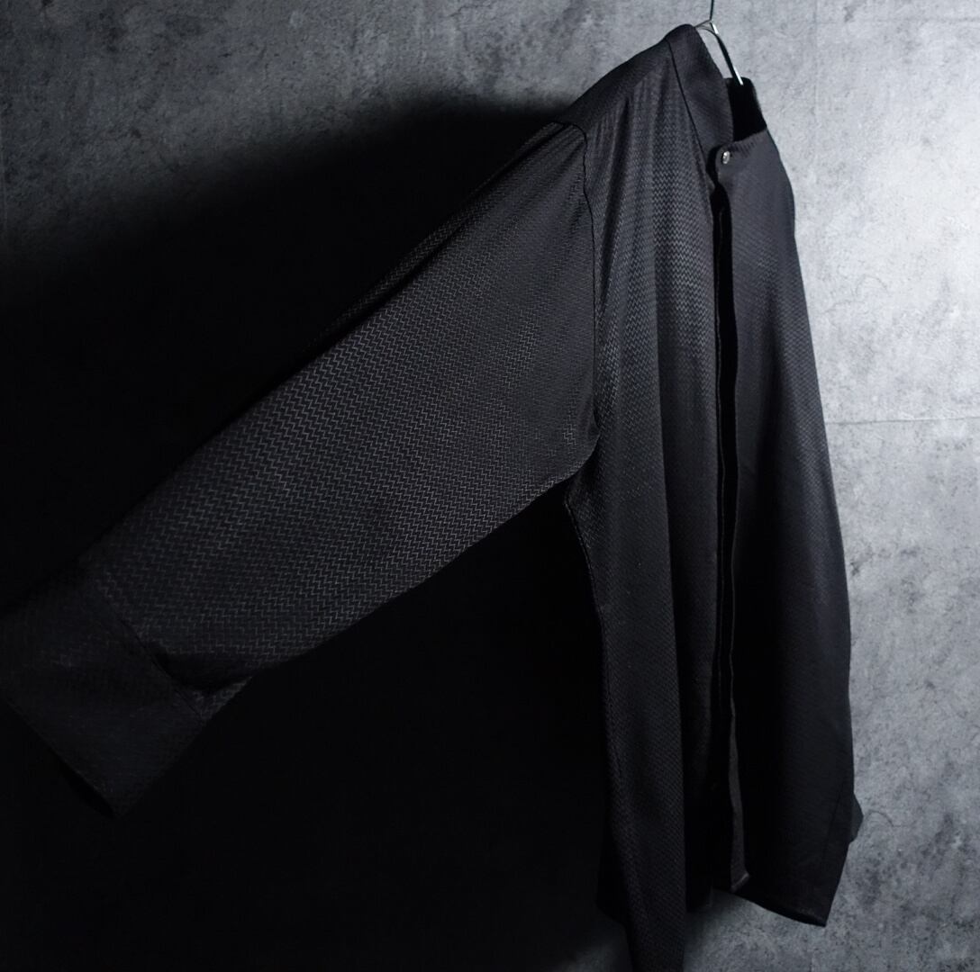 Black Herringbone Pattern Jacquard Band Collar Shirt