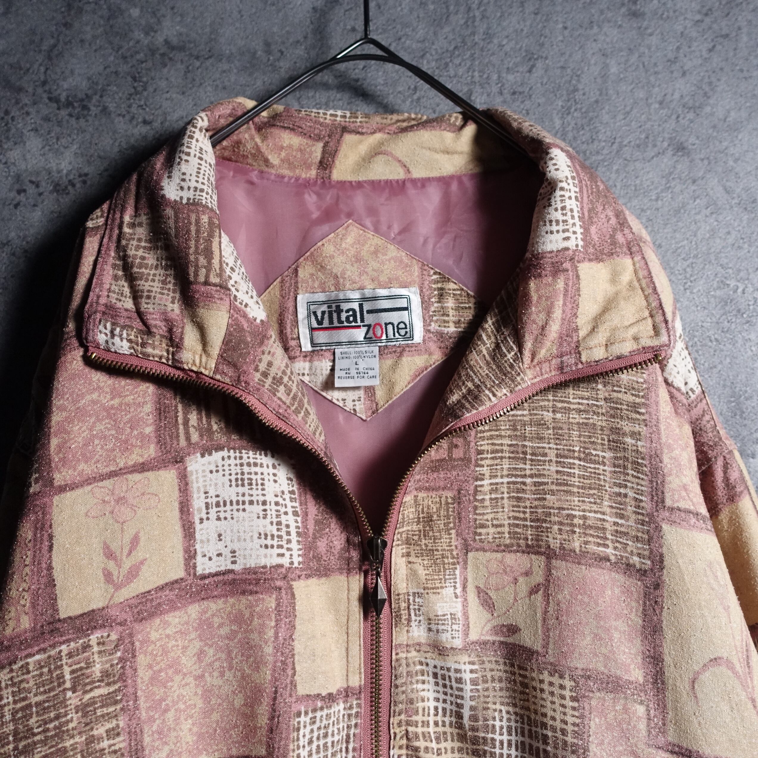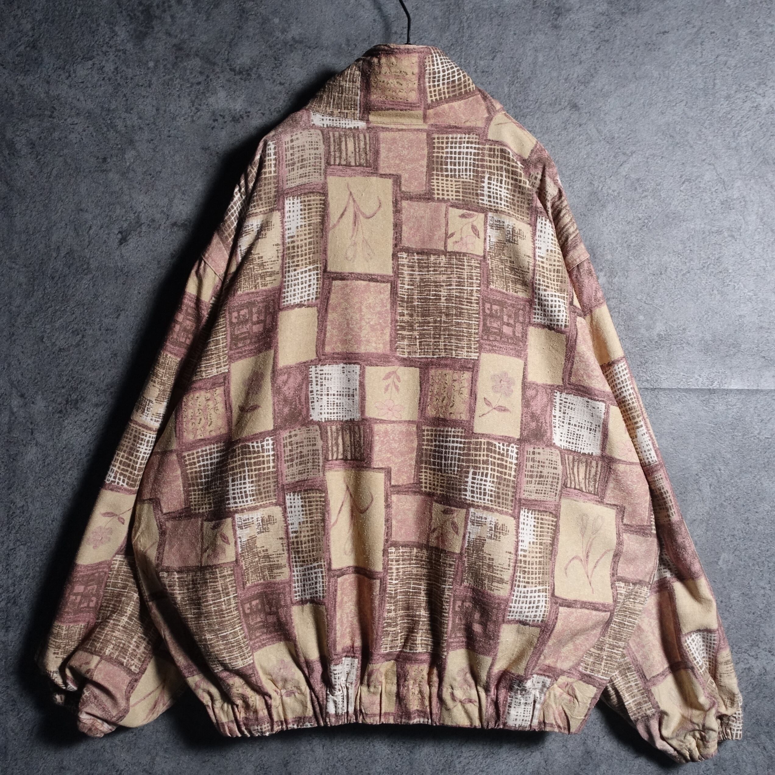 Flower motif & abstract pattern design silk blouson