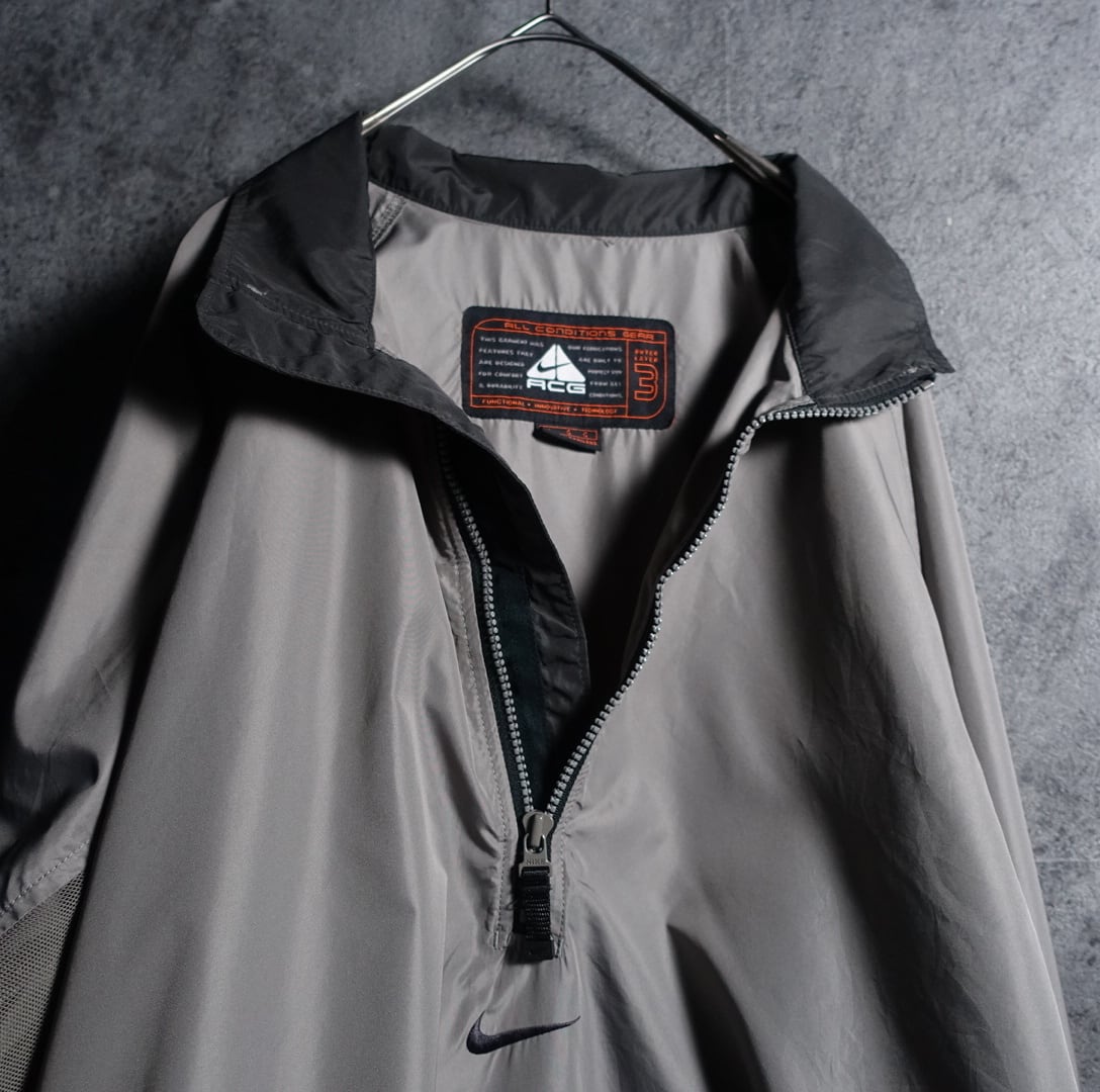 90s "NIKE ACG" Grey Logo Embroidered Design Packable Anorak Nylon Jacket
