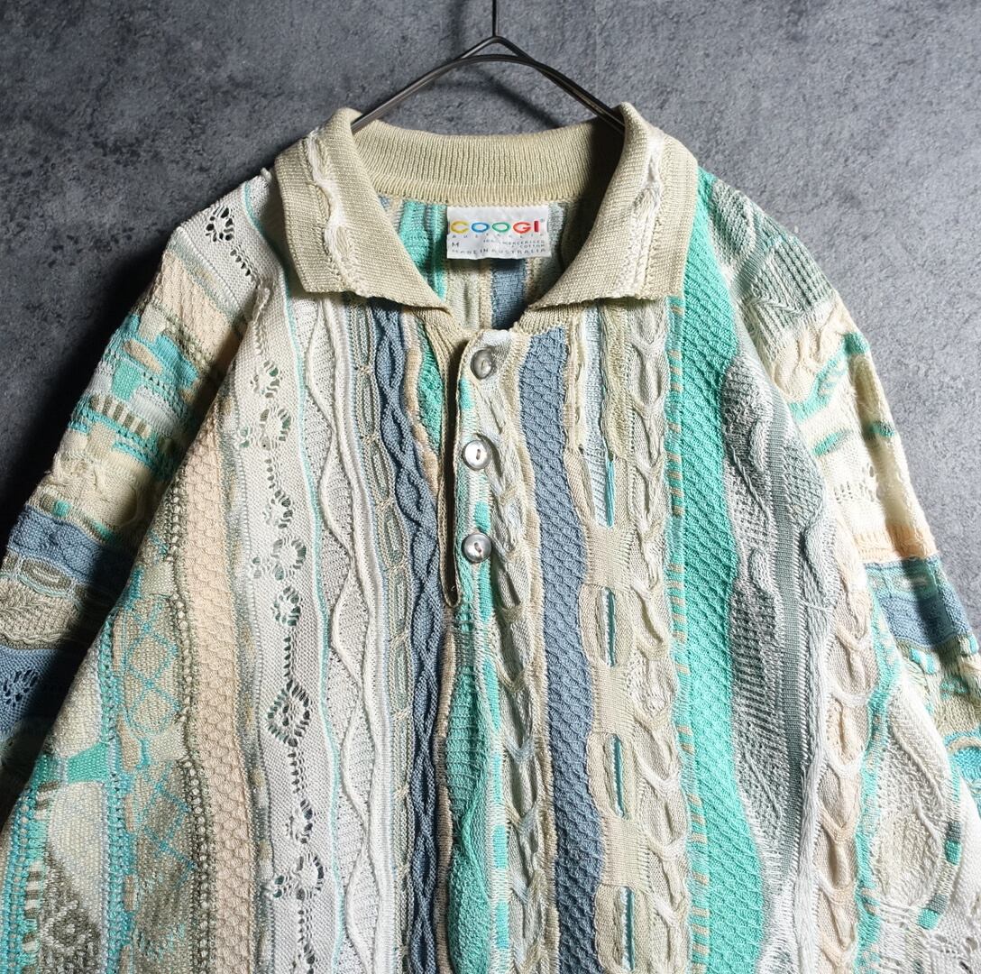 90s "COOGI" Multicolor 3D Pattern Design Mercerized Cotton Knit Polo