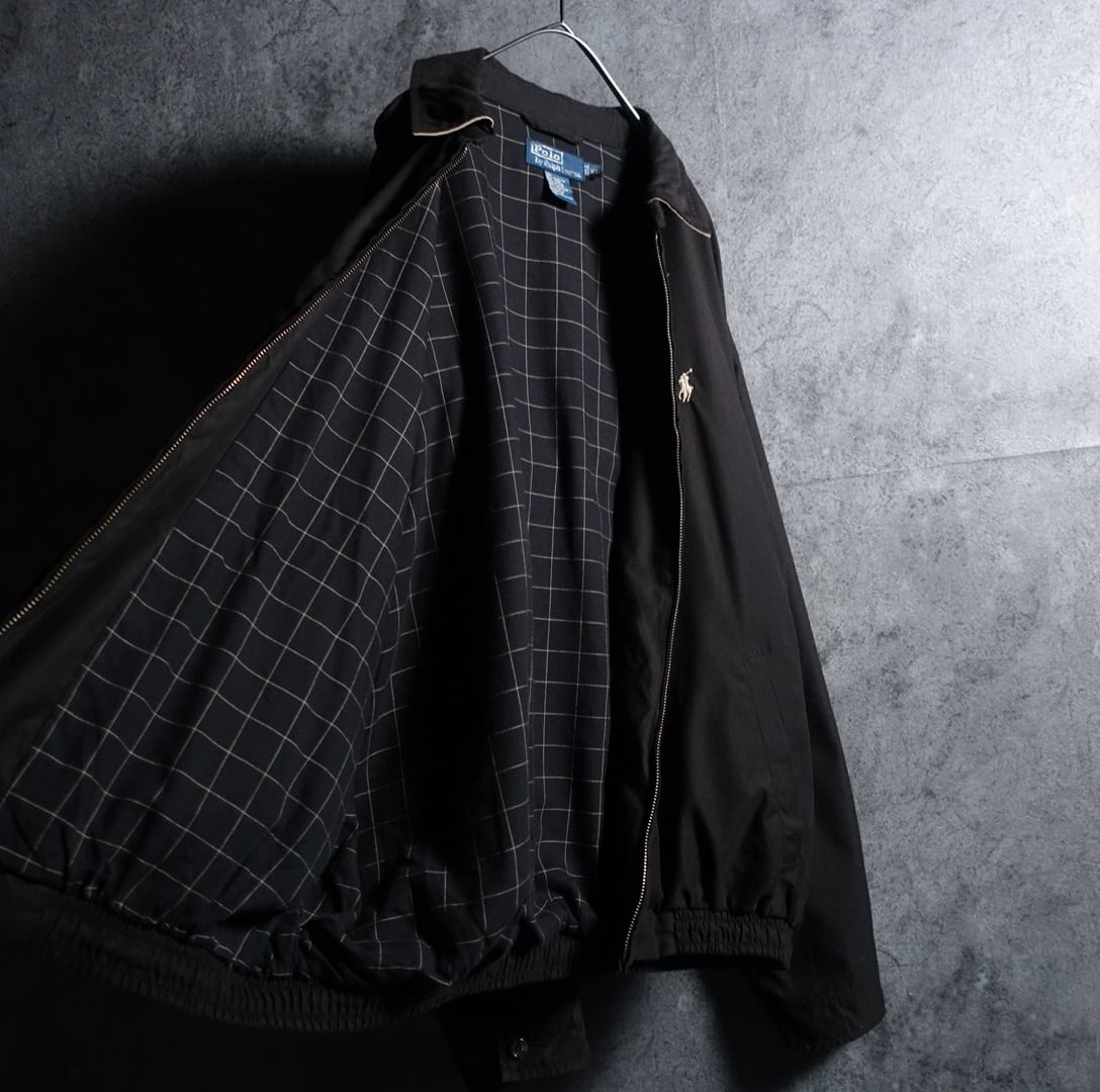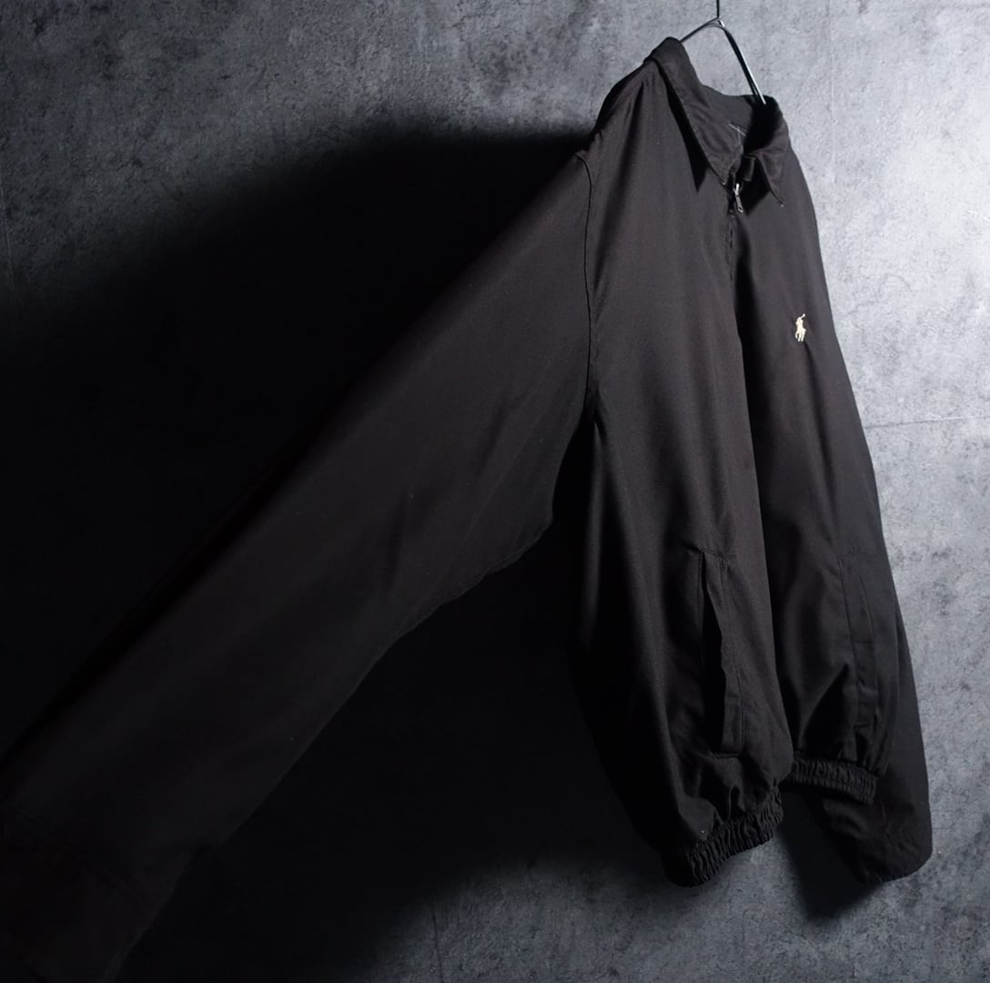 “Ralph Lauren” Black Logo Embroidery Design Smooth Swing Top Blouson