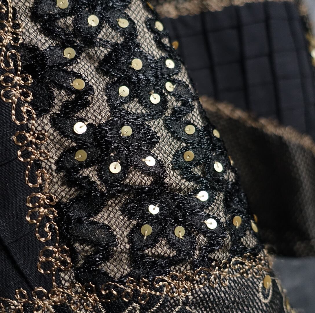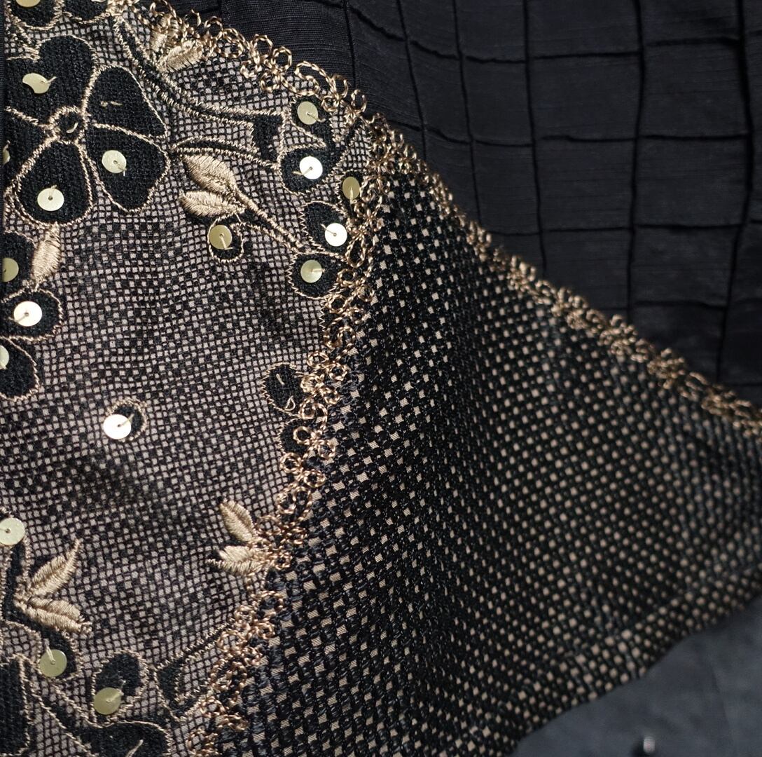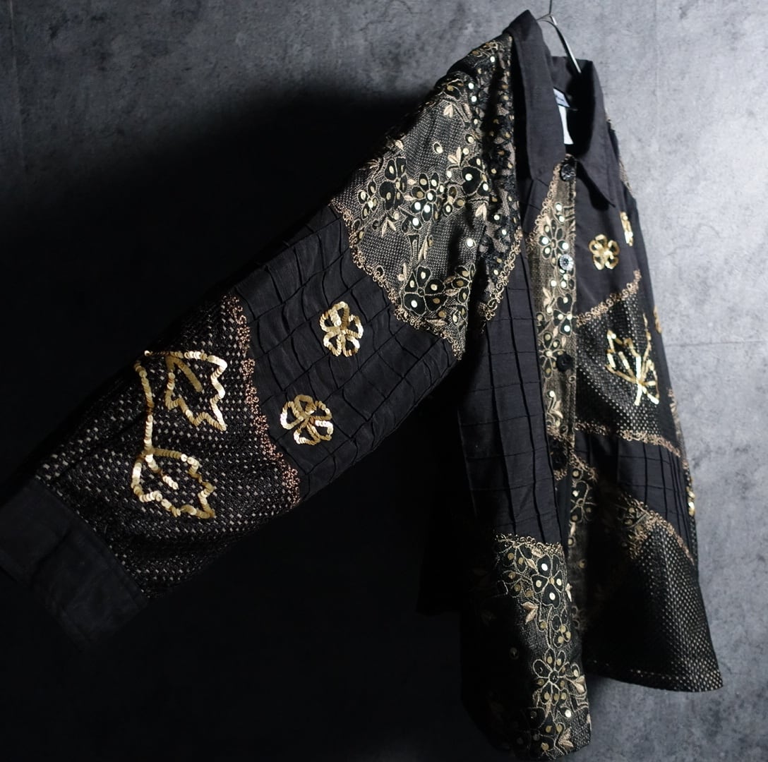 Black Flower Motif Sequin Embroidered Mesh Patchwork Desgin Jacket