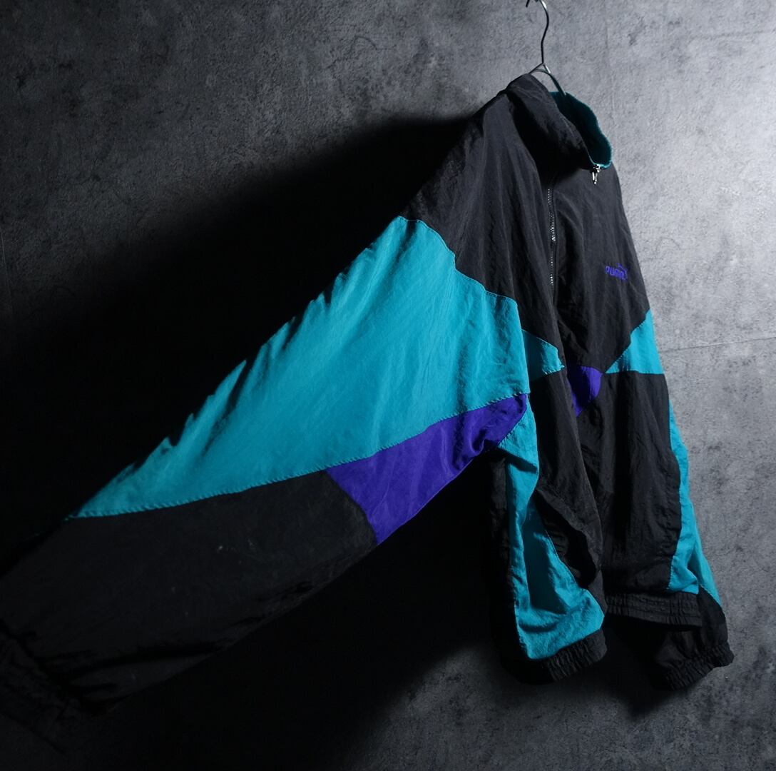 "PUMA" Multicolor Logo Embroidered Switching Design Nylon Track Jacket