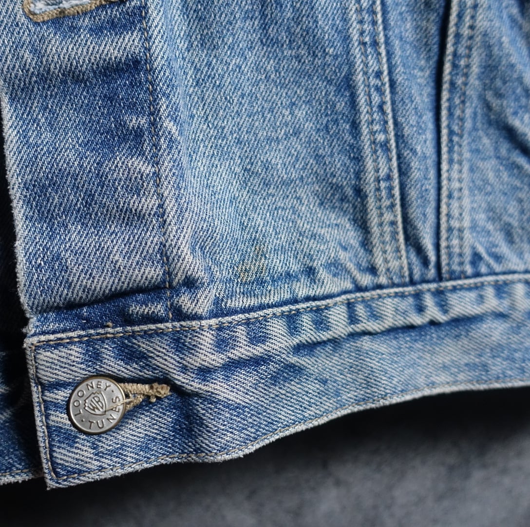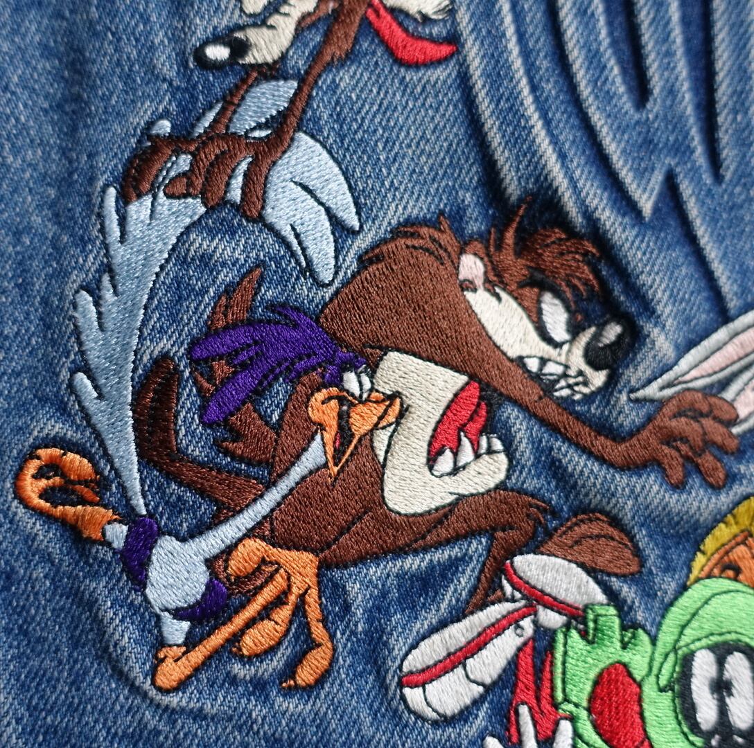 "WARNER BROS" Denim Character Embroidered Design Trucker Jacket