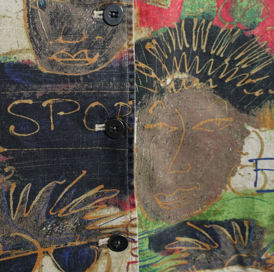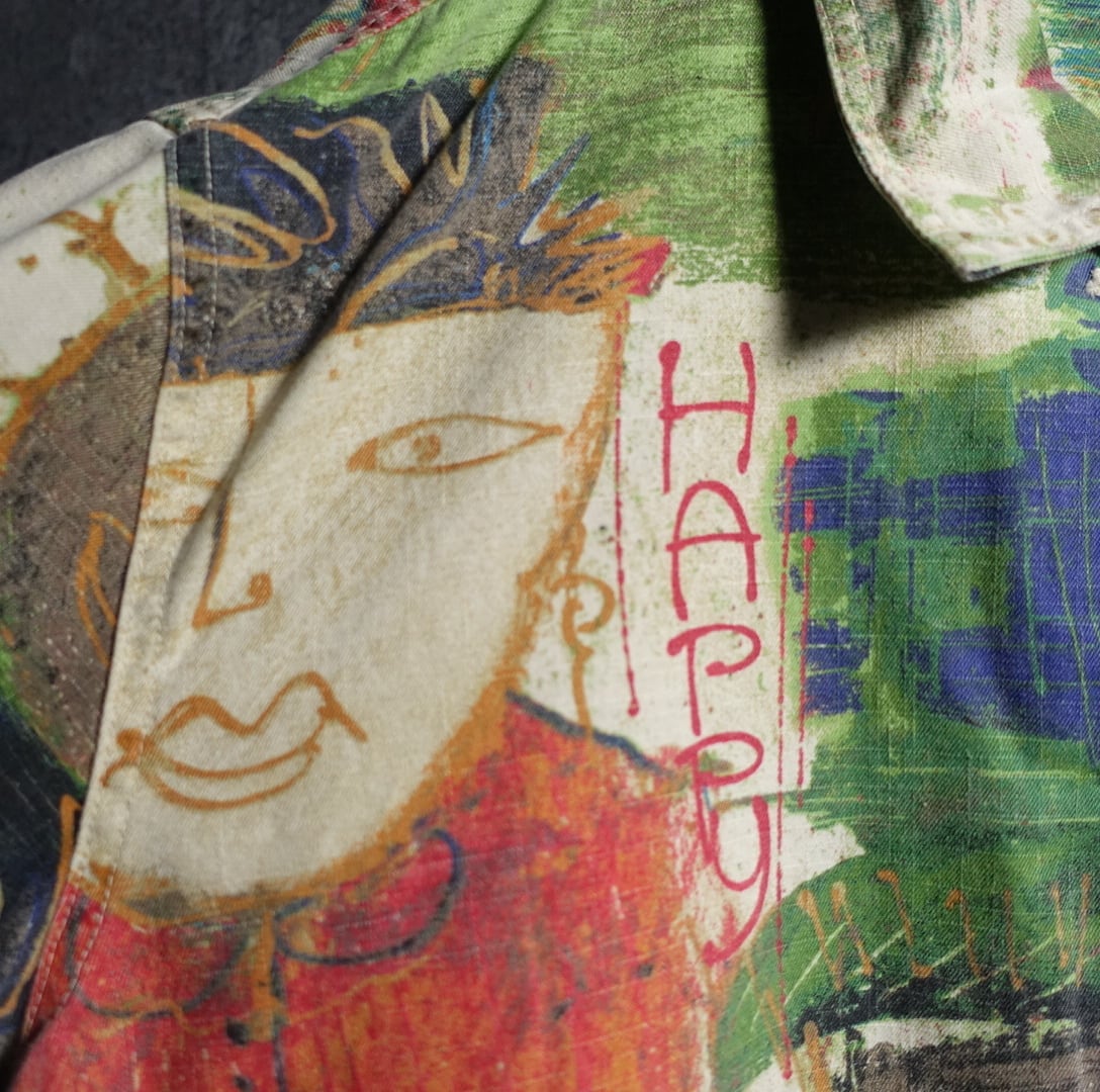 "CHICO'S" Multicolor Face Motif Artistic Design Trucker Jacket