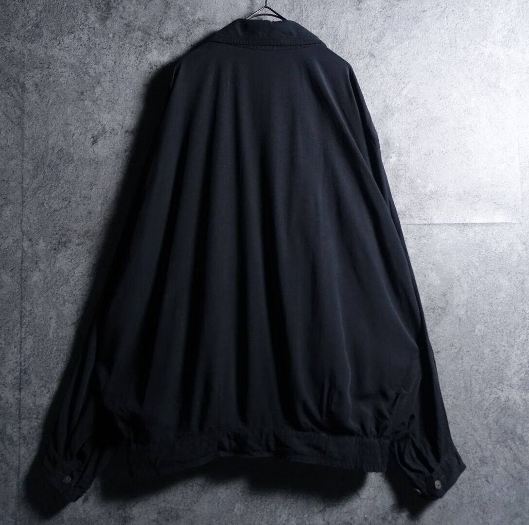 90s “Burberry” Black Logo Embroidered Design Rayon Swing Top Blouson