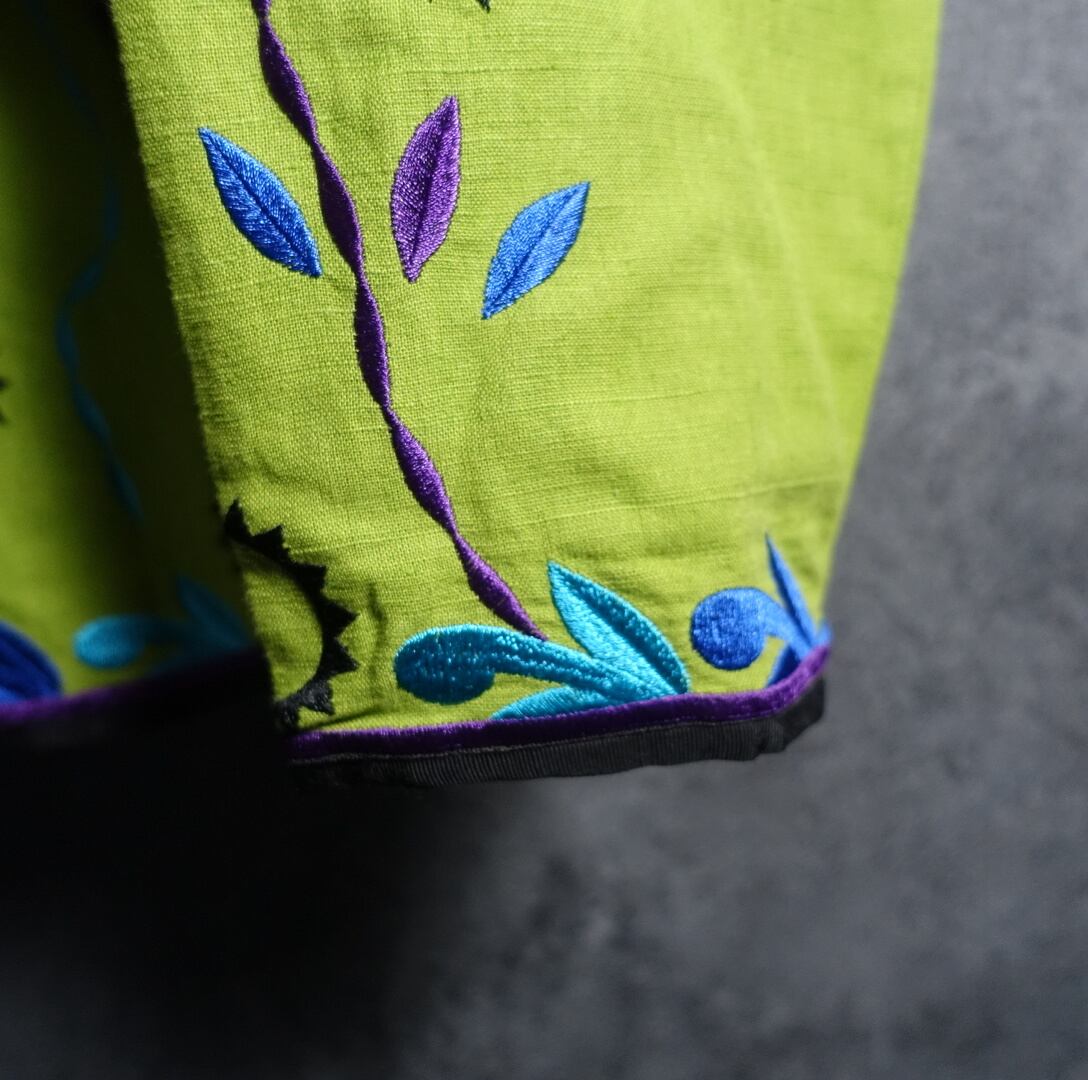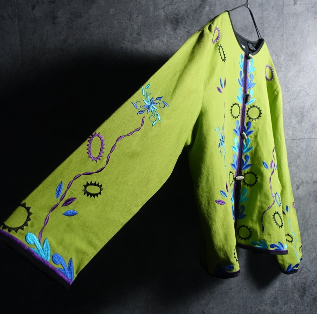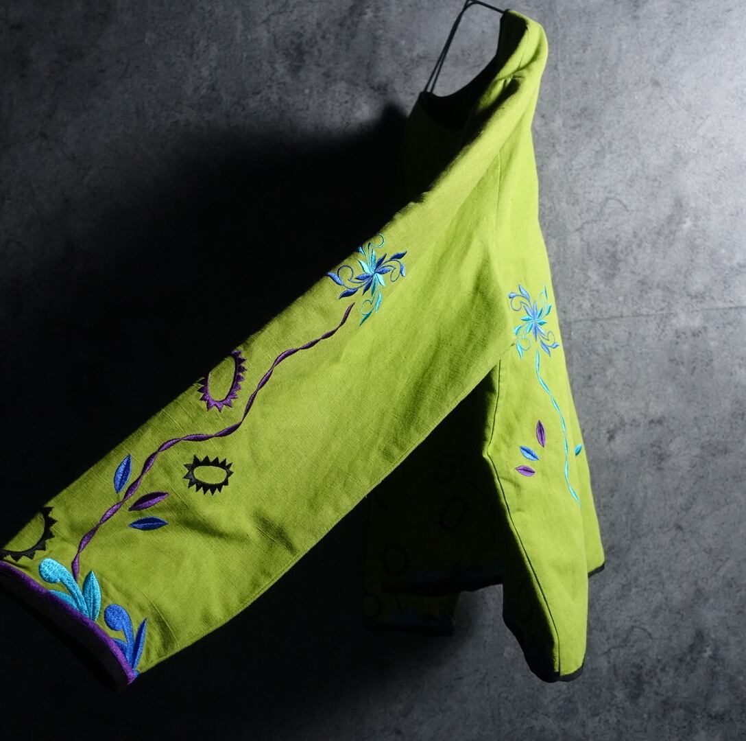 Lime Green Flower & Geometric Motif Embroidered Design No Color Jacket