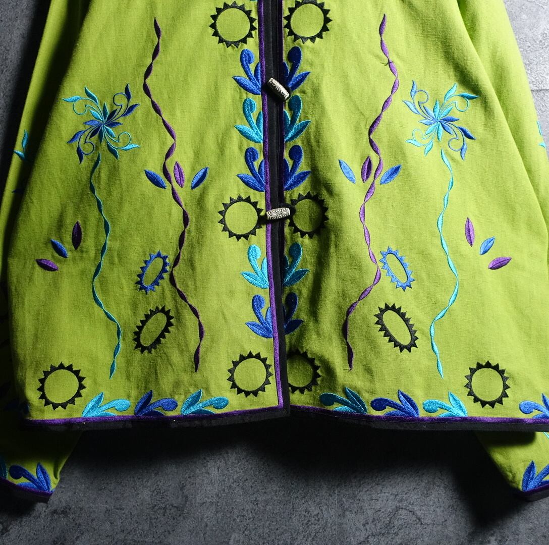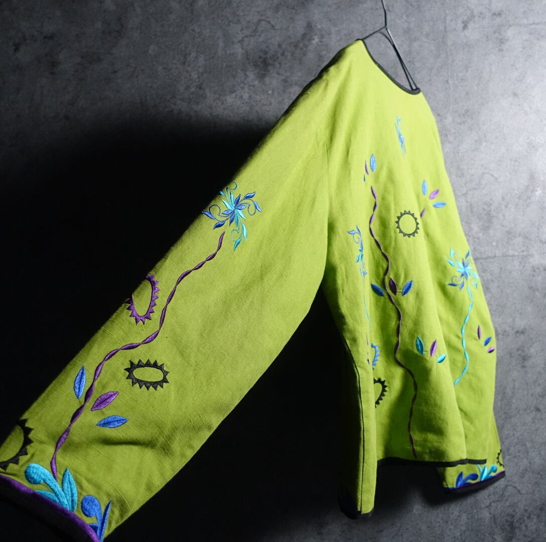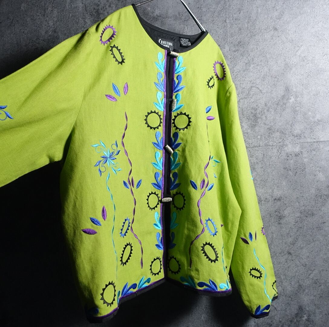 Lime Green Flower & Geometric Motif Embroidered Design No Color Jacket